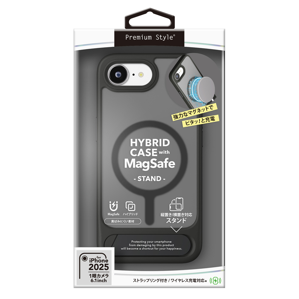 | 商品名 | iPhone 16e MagSafe対応 スタンド付ハイブリッドケース Premium Style マットブラック PG-25KMH09BK |