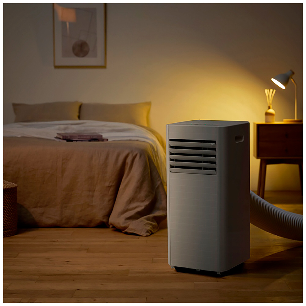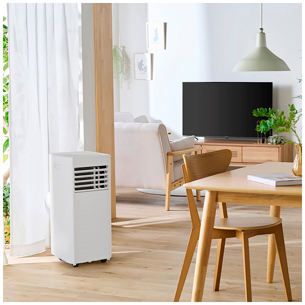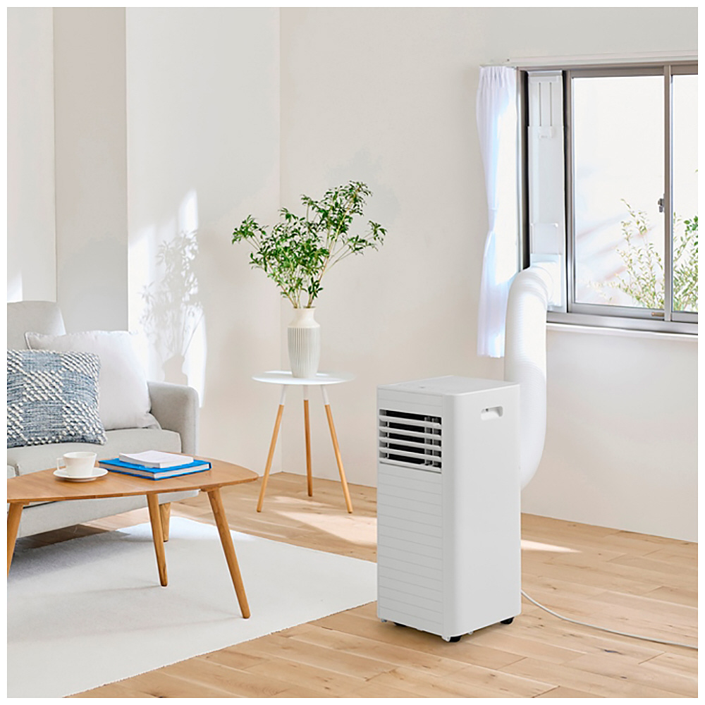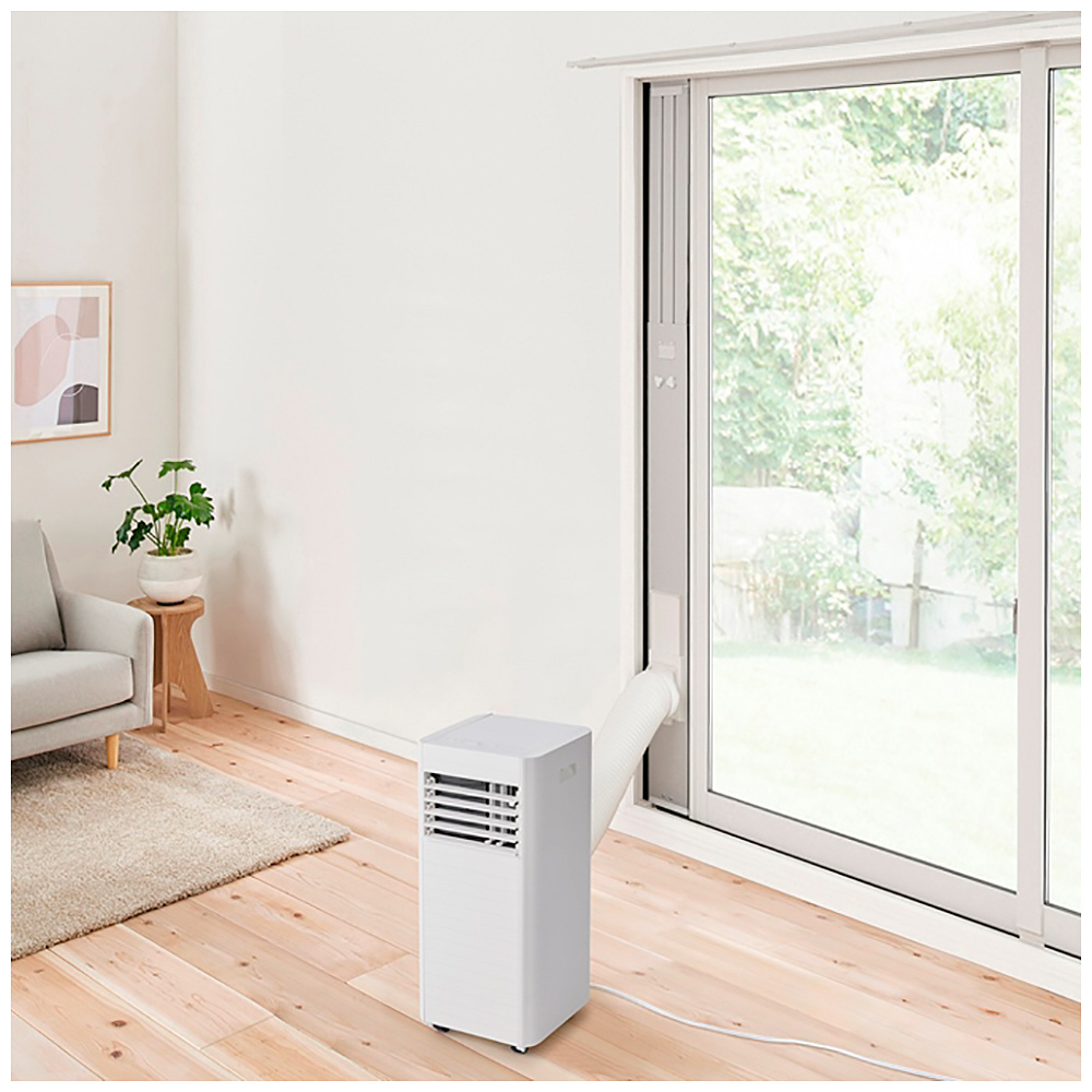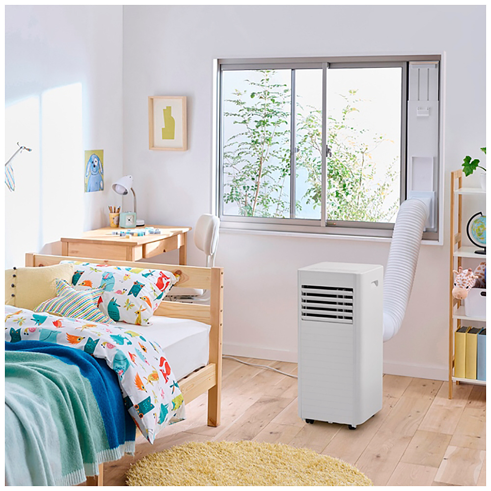 取付工事が不要で、エアコン配管穴が無く設置が難しい場所(キッチンやガレージなど)に、誰でも簡単に設置できる移動式エアコンです。