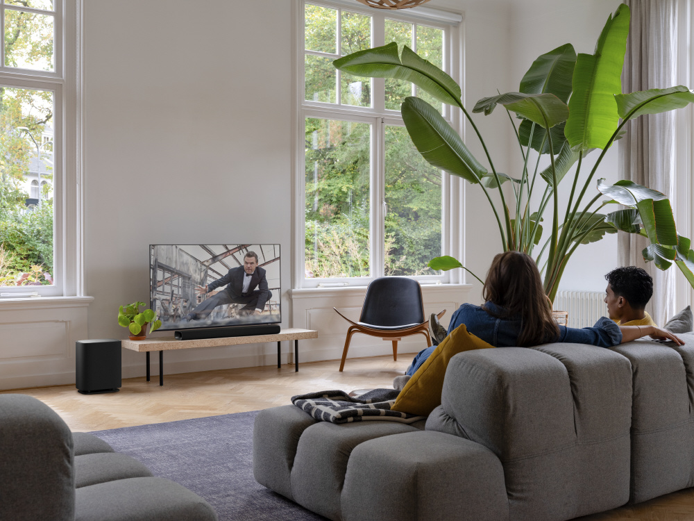 ダウンファイヤリング方式の約16cm径サブウーファーにより、サウンドバーの広大な包み込むようなサウンドステージが、さらに臨場感あふれるものになります。