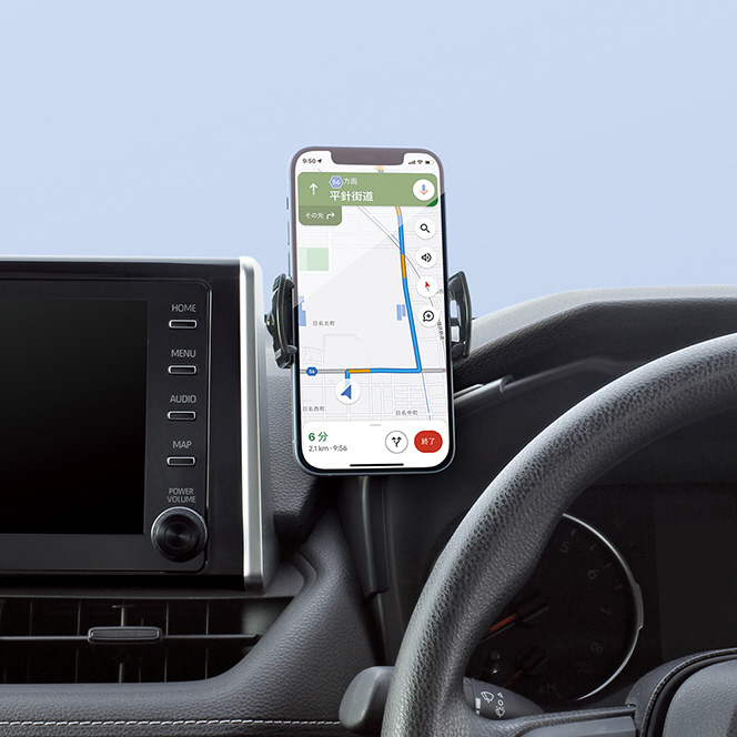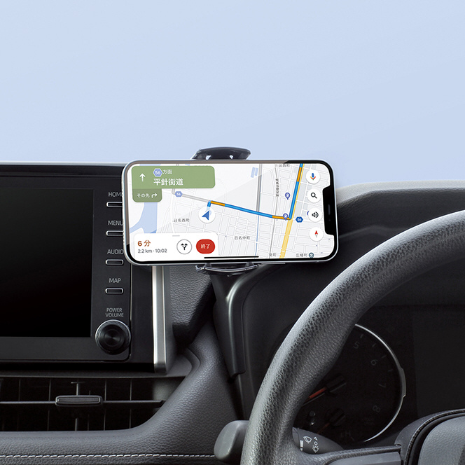 RAV4(MXAA/AXAH/AXAP50系)の右ハンドル車のメーターフード左側に取り付けるスマートフォンホルダーです。