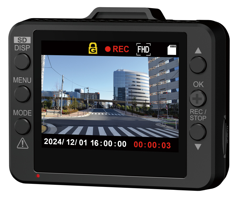 高画質記録200万画素、高耐久MLC方式16GBmicroSDカード付属。ドライブレコーダーとして必要な機能を備えながら、車線逸脱の危険をお知らせする安全運転サポート機能を搭載。SDカードのメンテンナンスフリーも搭載され安心です。