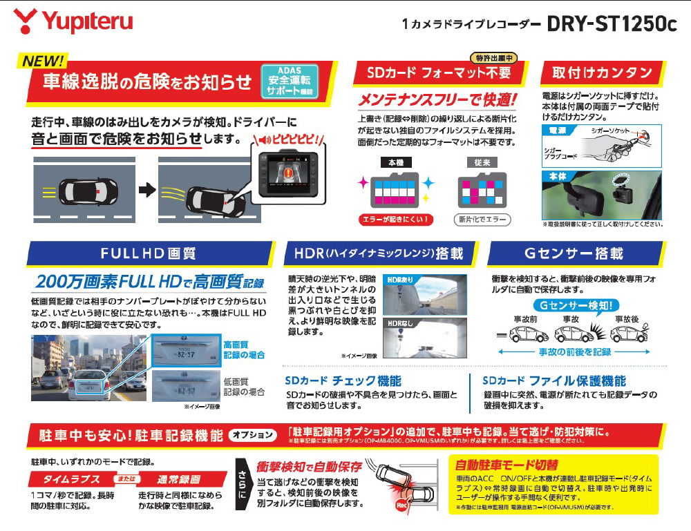 ドライブレコーダー DRY-ST1250c [Full HD(200万画素) /一体型]