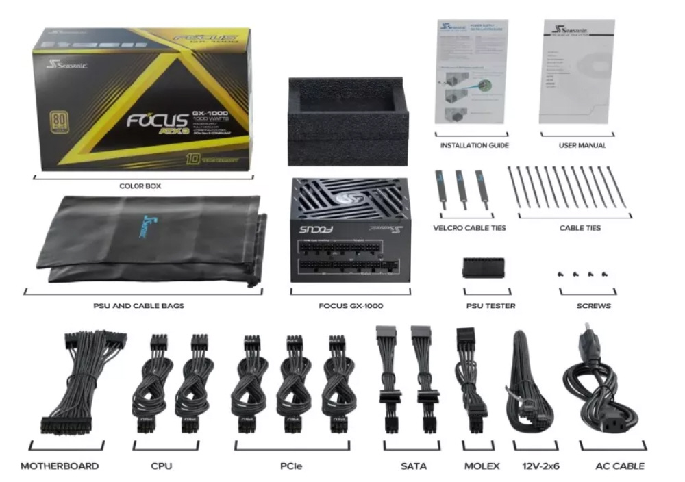 PC電源 Focus GX-1000 ATX3 (V4) ブラック SRP-FGX102-A5A32SF [1000W /ATX/EPS /Gold]