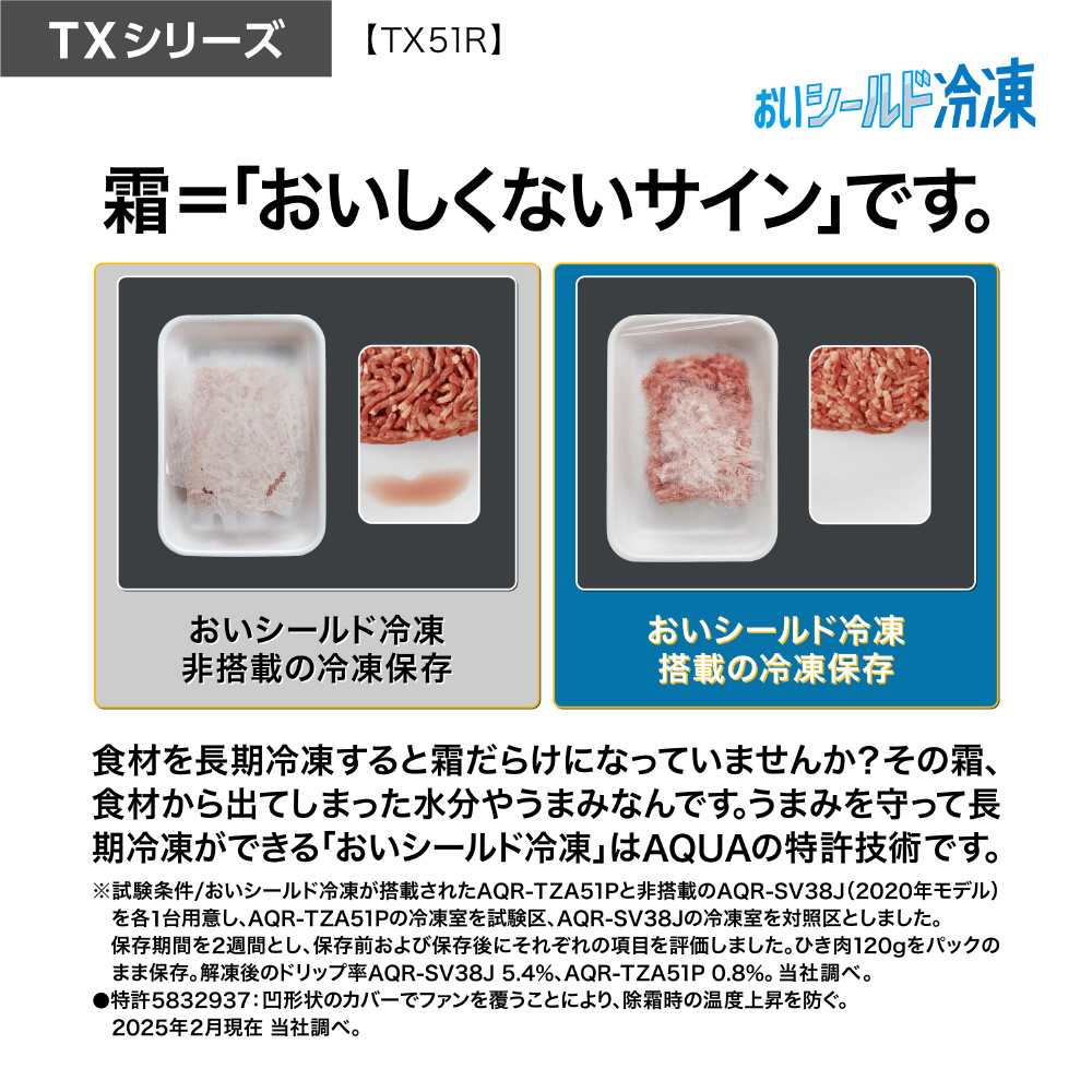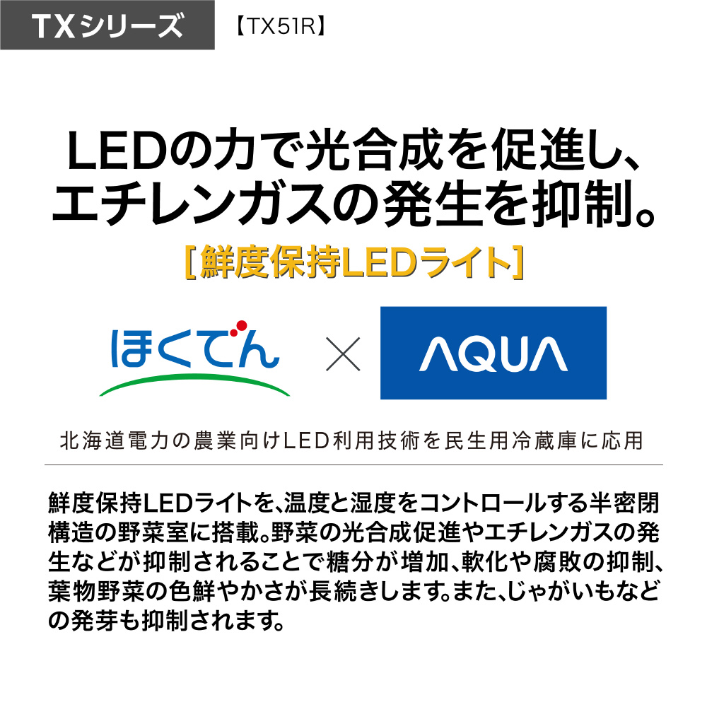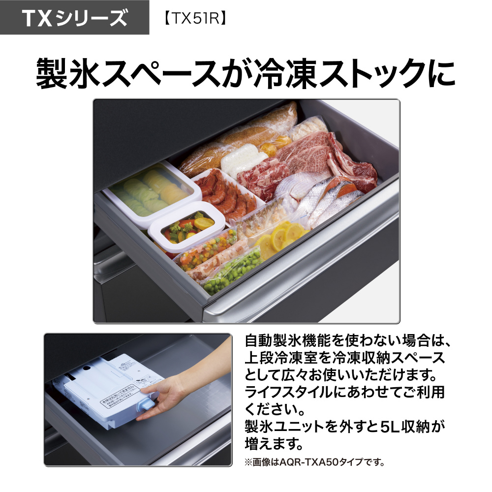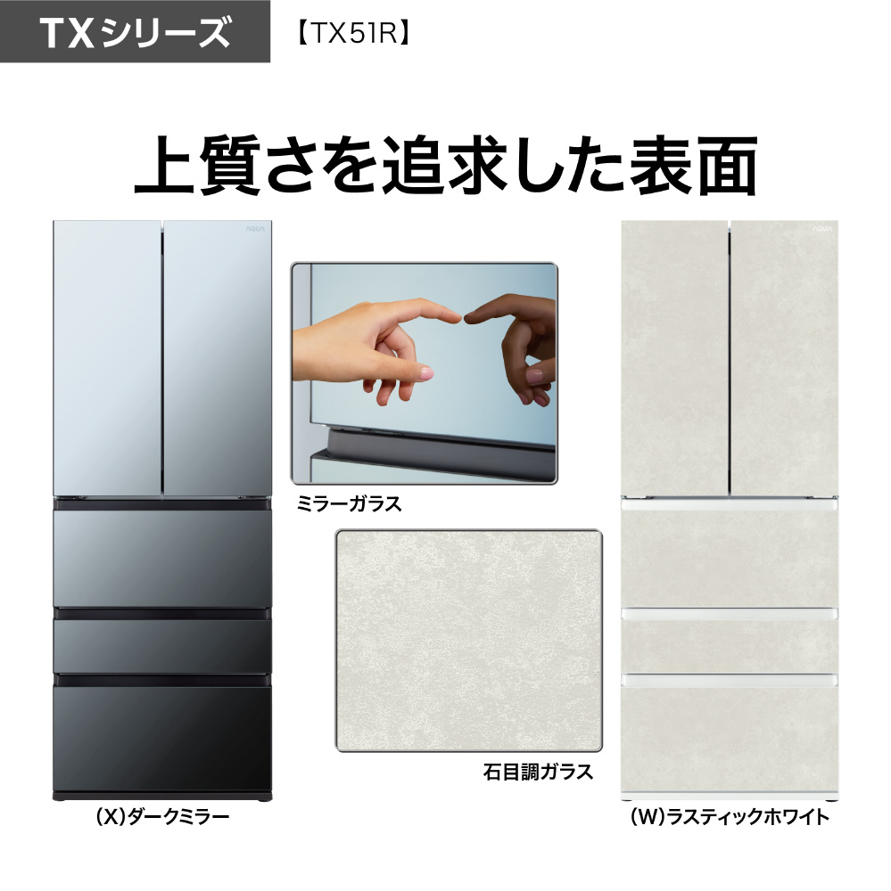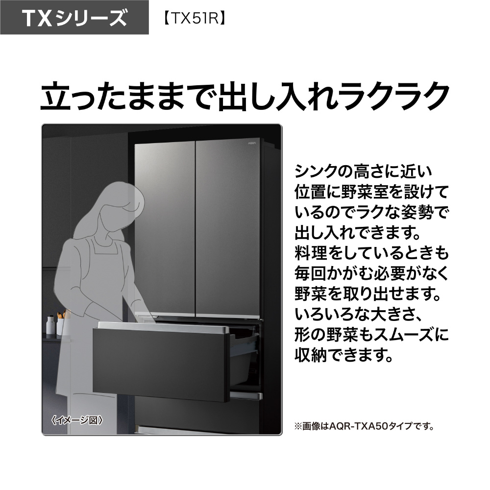 | 商品名 | 冷蔵庫 ダークミラー AQR-TX51R(X) [70 /506L /5ドア /観音開きタイプ /2025年] 【基本設置料金セット】 【買い替え10000pt】 |