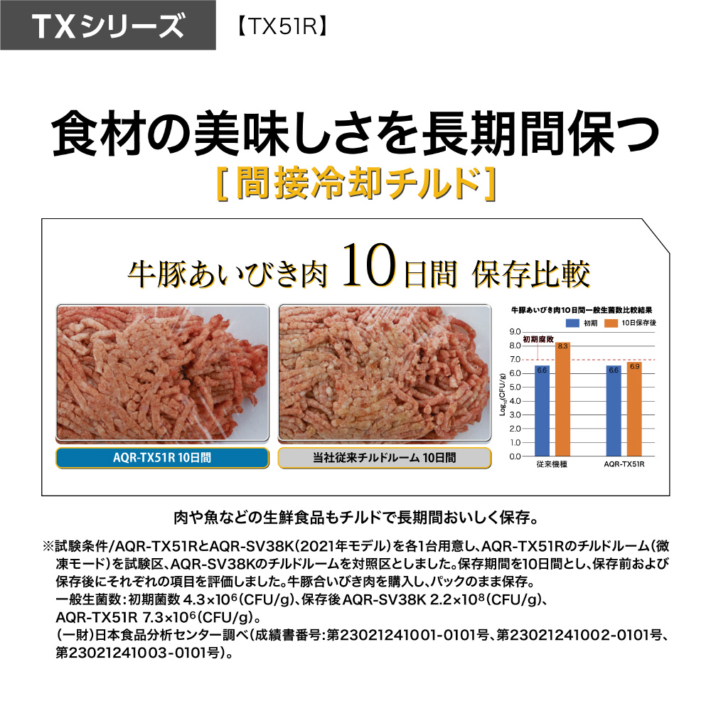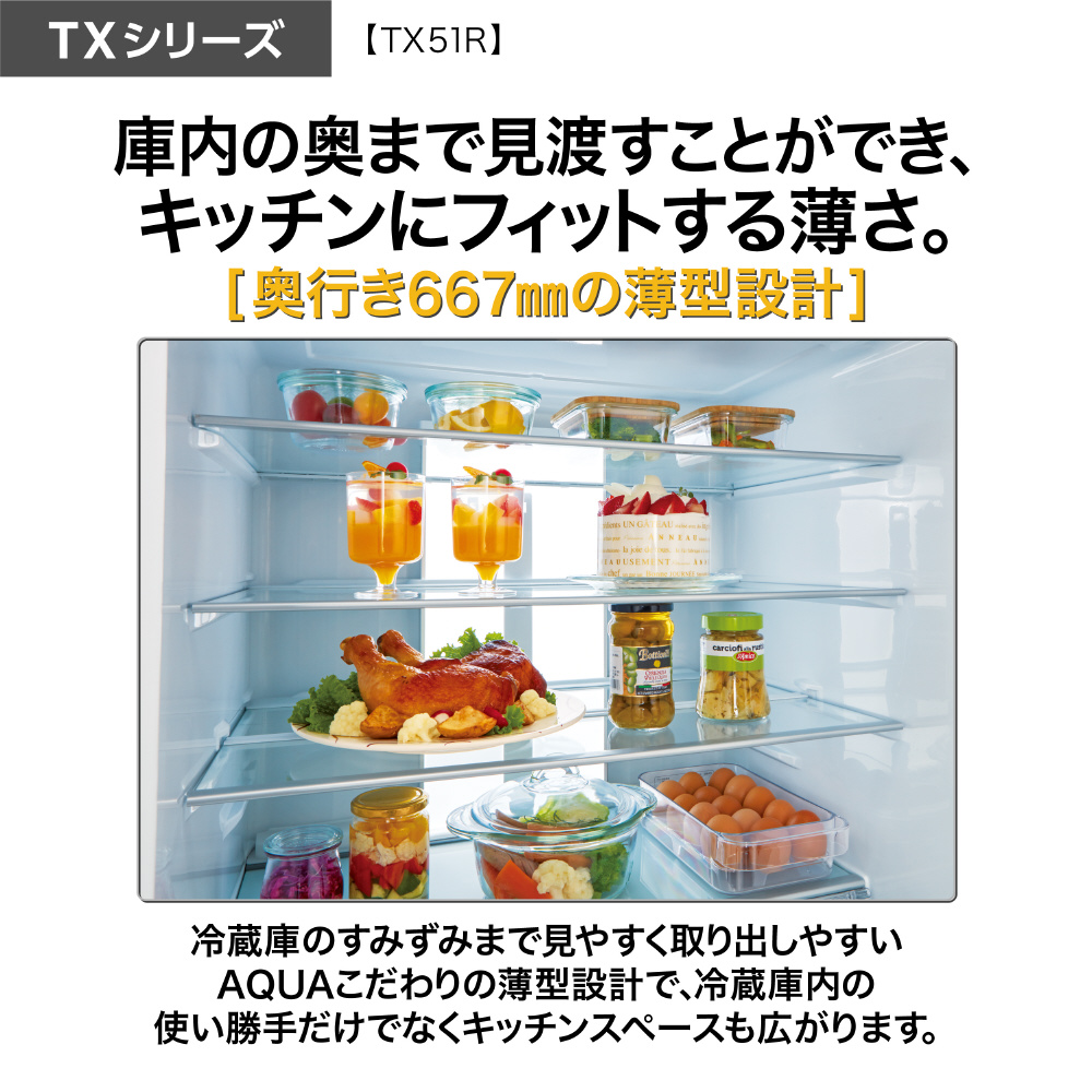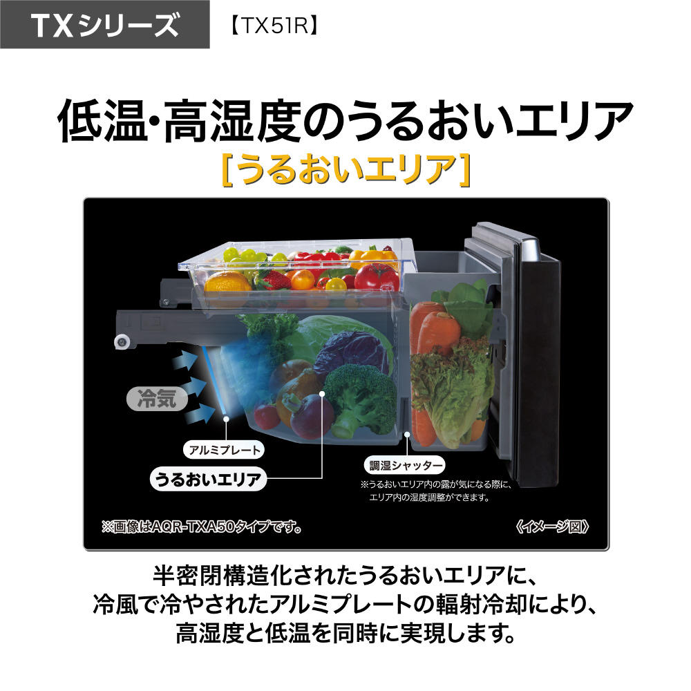 冷蔵庫 ラスティックホワイト AQR-TX51R(W) [幅70cm /506L /5ドア /観音開きタイプ /2025年] 【基本設置料金セット】 【買い替え10000pt】