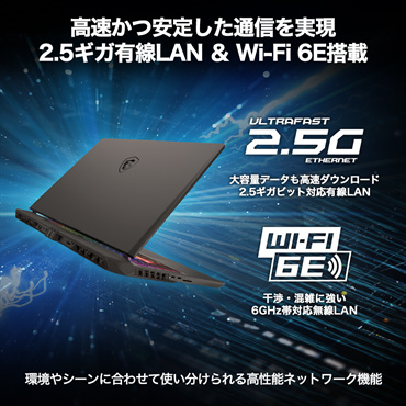 高速な2.5Gbps対応有線LANに加え、干渉や混雑に強い「Wi-Fi 6E」を標準搭載。環境やシーンに合わせて使い分けることでより安定した通信が可能。
