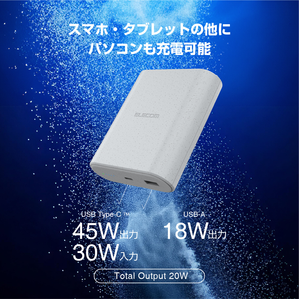 USB Type-C(TM)ポートはUSB Power Deliveryに対応。最大45Wでの出力が可能です。充放電に優れているため、パソコンやNINTENDO SWITCH(TM)、NINTENDO SWITCH Lite(TM)などのゲームも充電可能です。