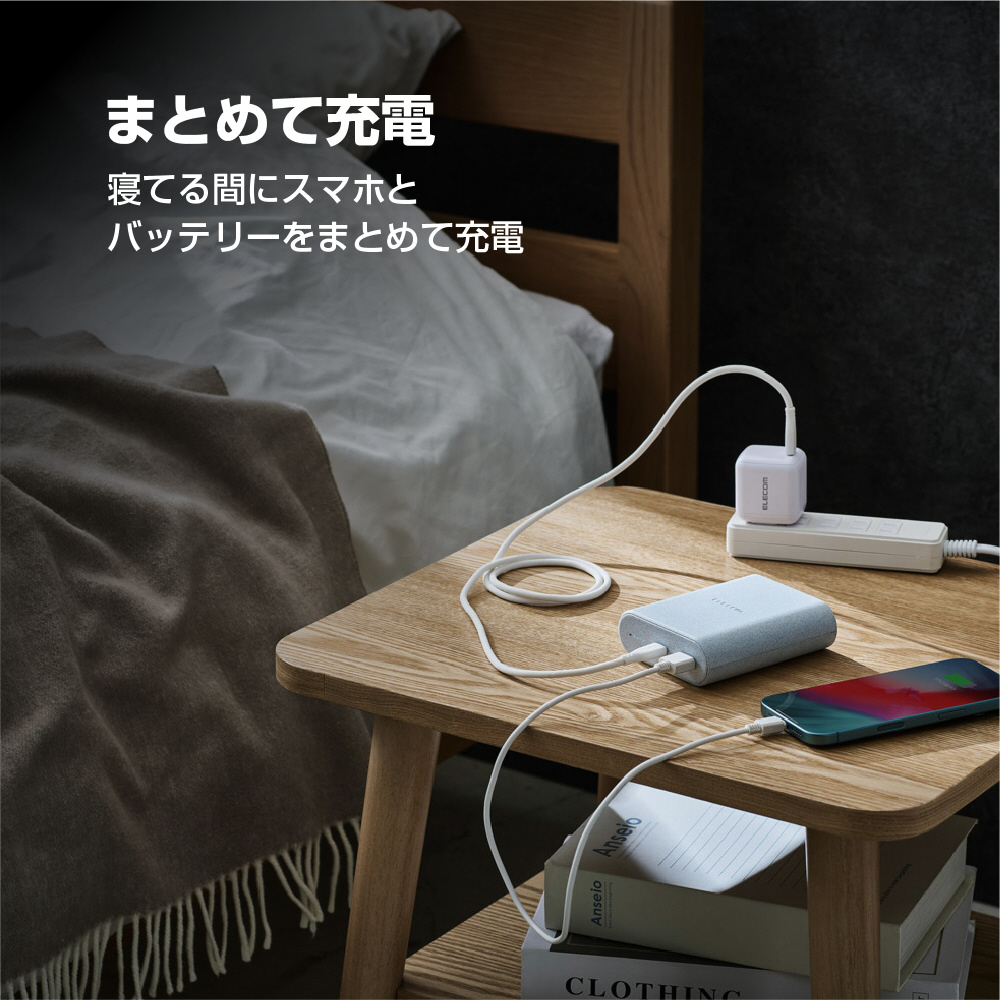 USB-Aポートからは最大18Wでの充電が可能。2ポート同時接続時も合計最大20Wでの出力ができ、iPhoneをはじめとしたスマートフォンやワイヤレスイヤホン、ヘッドセットなどの同時充電が可能です。