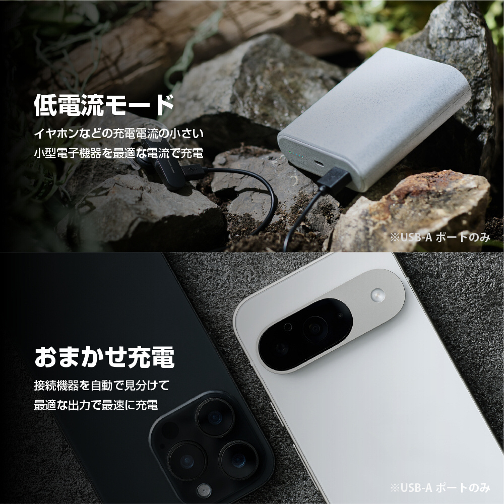 地球に優しいナトリウムイオン電池を採用した、長く使える9000mAhのモバイルバッテリーです。