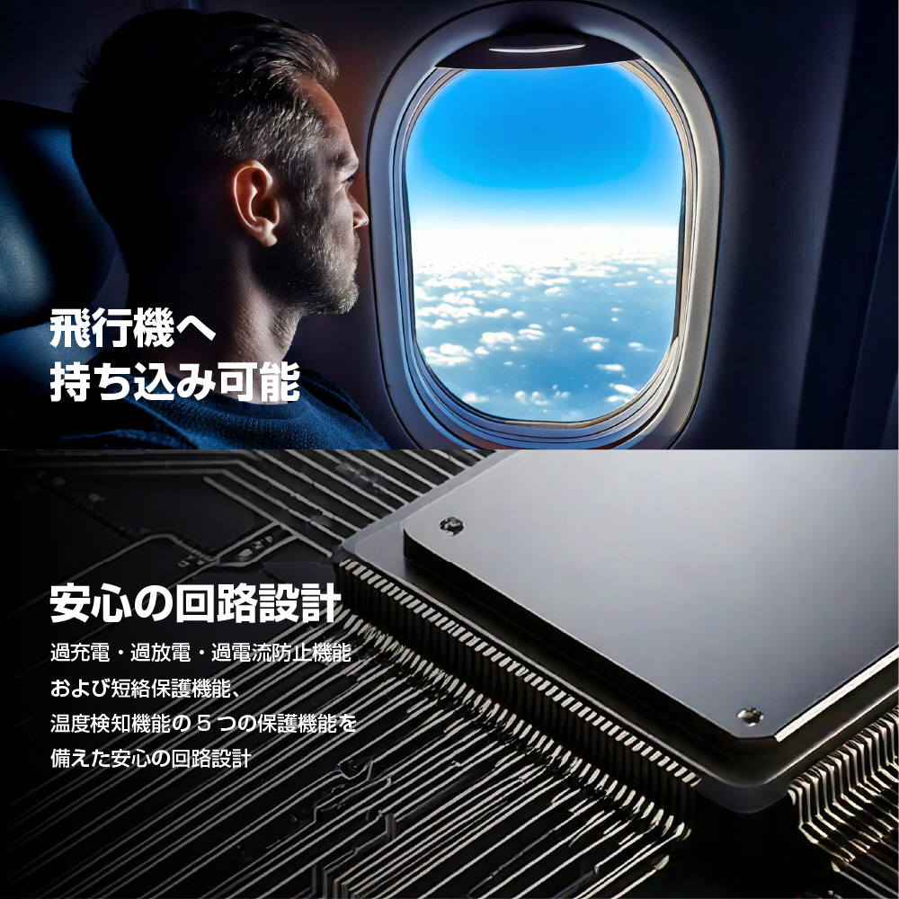 UN38.3(国連勧告輸送試験)合格品で、機内持ち込みも可能です。
