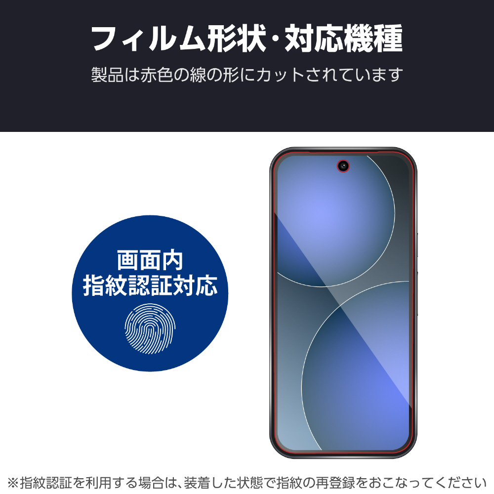 ■※フィルムを装着した状態で画面内指紋認証機能を利用する場合は、装着した状態で指紋の再登録を行ってください。