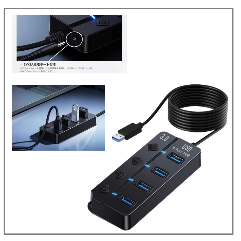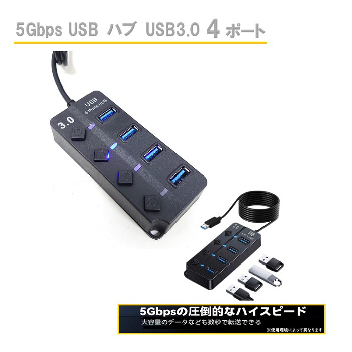 高速転送5Gbps USB ハブ USB3.0 4ポート