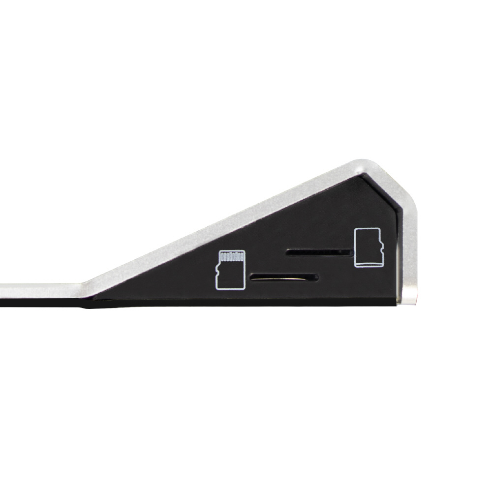 本製品は、本体上部側面にデュアル仕様としてmicroSDカードリーダースロットが2つ搭載されています。