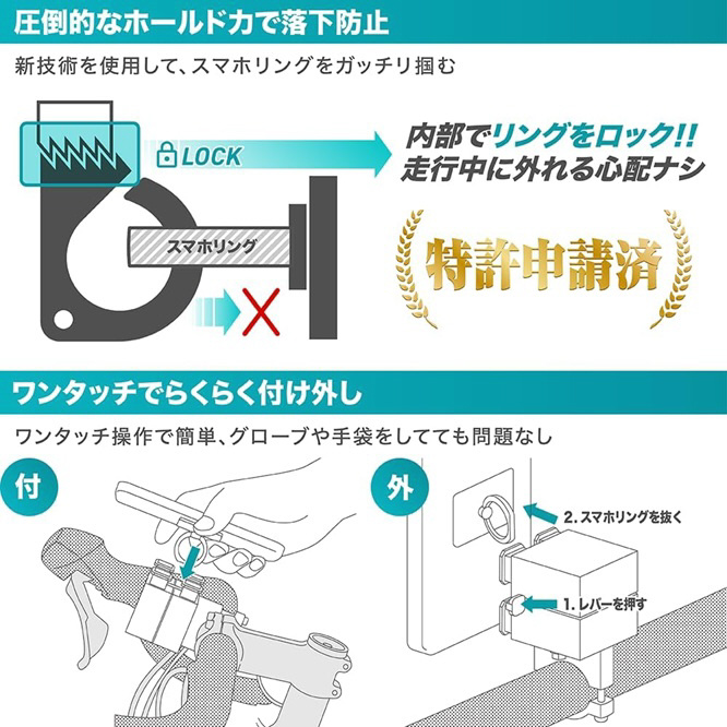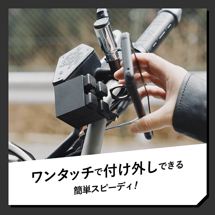 スマホリングに特化した自転車・バイク・電動キックボード用のスマホホルダー。