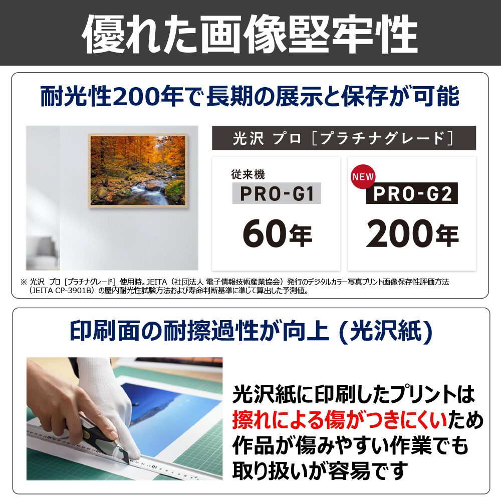 印刷したプリントの耐光年数は従来の60年から200年子※へと大幅に向上。