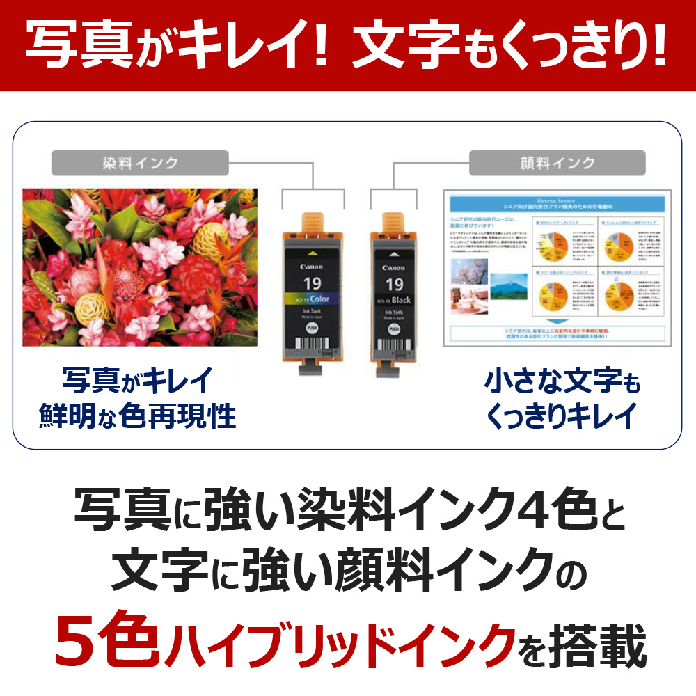 | 付属品 | [インクカートリッジ]BCI-19Color/BCI-19Black [その他]USBケーブル(Type-C)/設置・基本操作マニュアル(紙) |