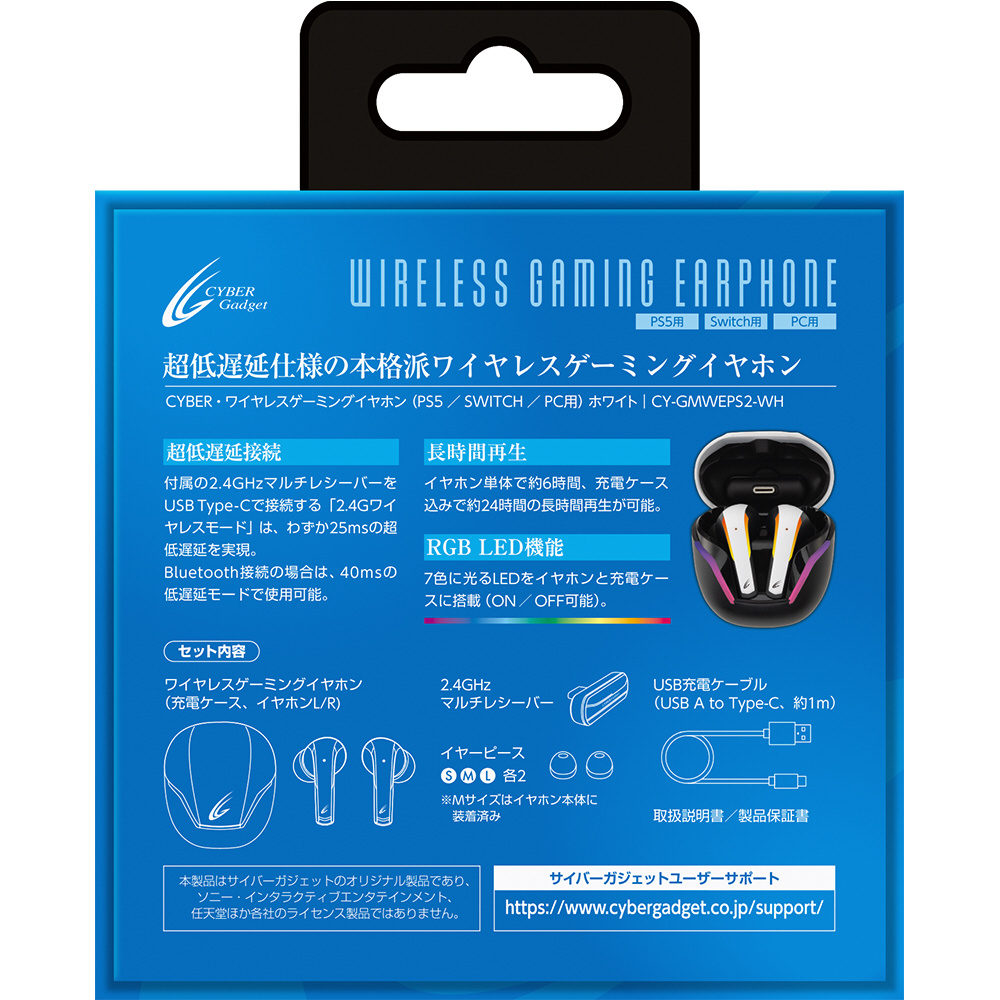 SWITCH/PS5用ワイヤレスゲーミングイヤホン ホワイト [CY-GMWEPS2-WH]【sof001】