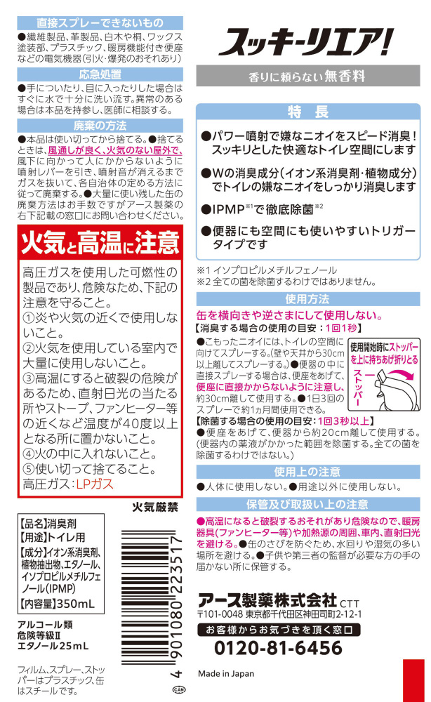 | 商品名 | スッキーリエア!トイレ用無香料350ml |