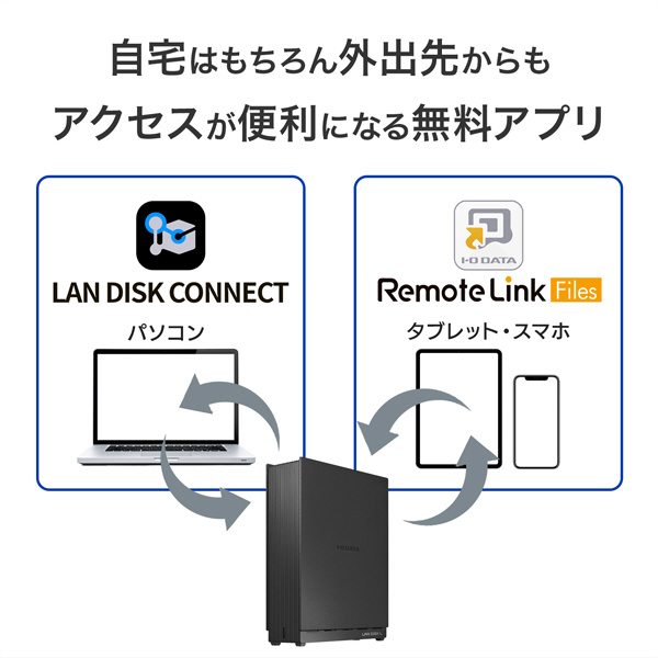 USBハードディスクのように直接PCにつなげる必要がなく、データのやり取りをする際も、ケーブルをつなげなおしたり機器を持ち運ぶ必要がありません。