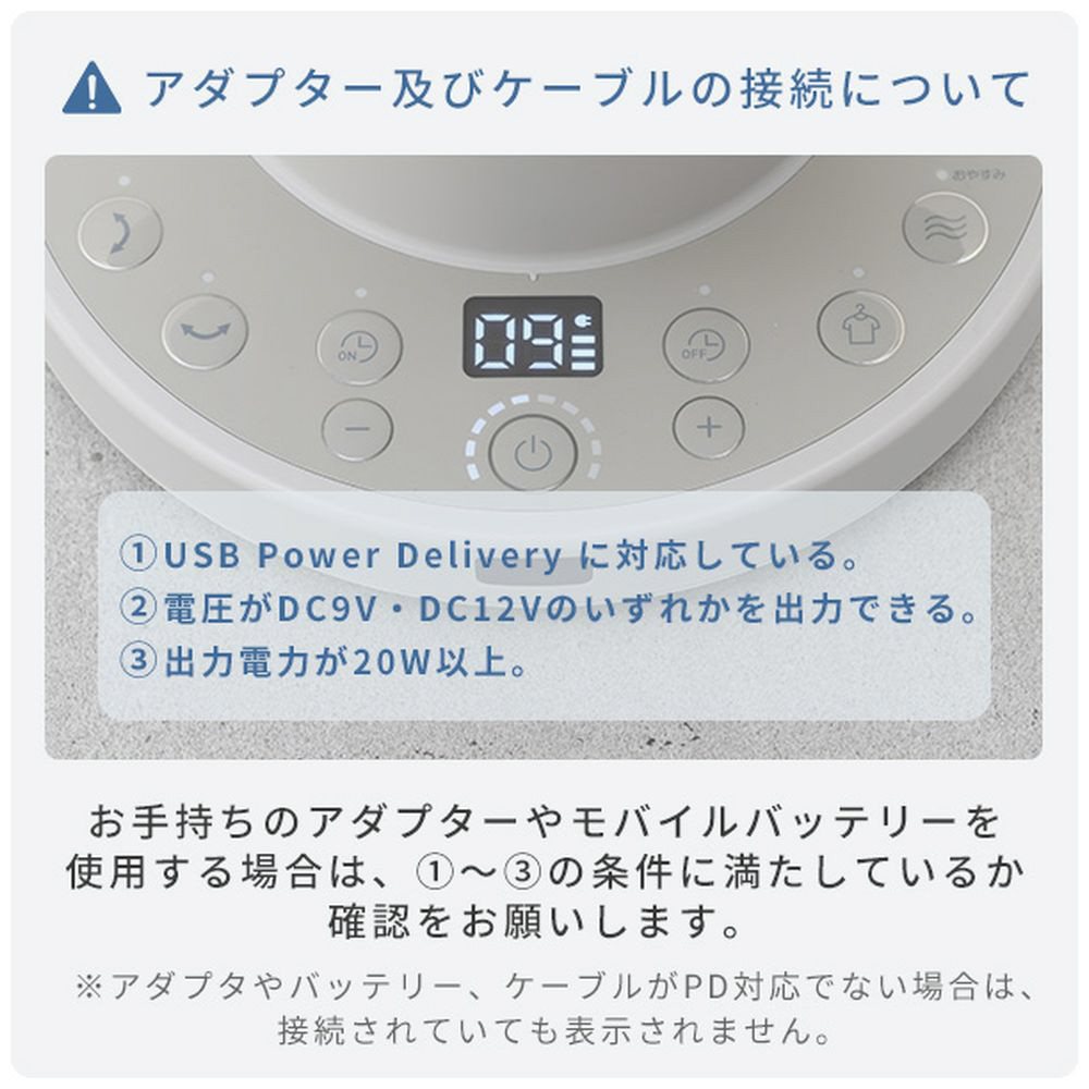 DCモーター充電式サーキュレーター PD(パワー・デリバリー)シリーズ グレージュ RCRP-BZX015-C [DCモーター搭載 /リモコン付き] 【864】