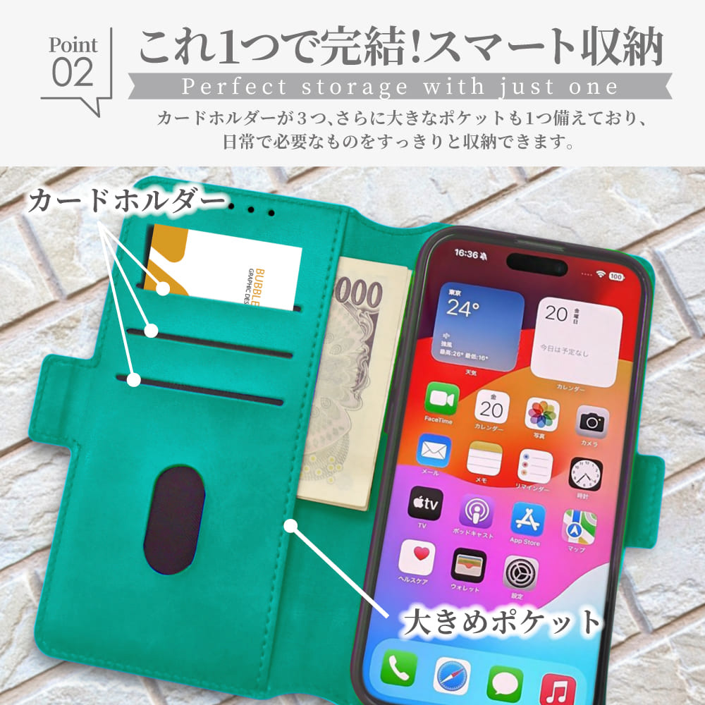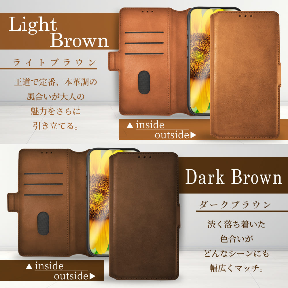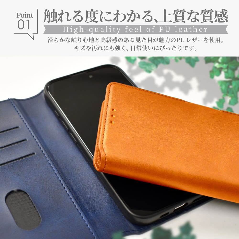 本革調なのに高級感を演出してくれるのフェイクレザー手帳型ケース!日常使いしやすい軽量の薄型スリムタイプ