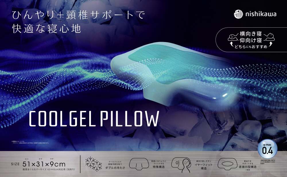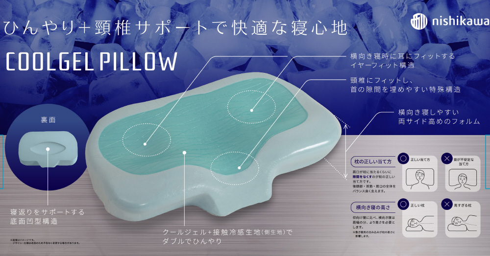 ひんやり+頸椎サポートで快適な寝心地のnishikawaの枕。