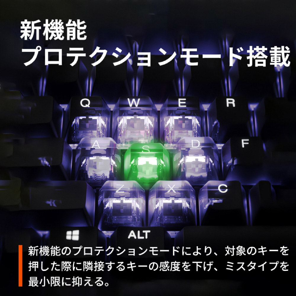 人気のRapid Triggerに加え、新機能Rapid Tap、プロテクションモード、そしてGG Quicksetなど、ゲームに勝つための新たな機能が追加されました。
