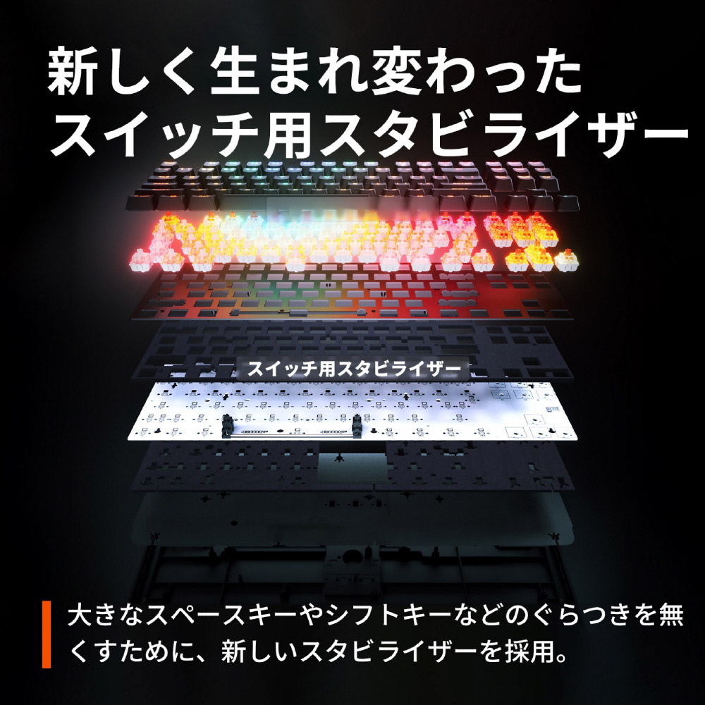 生まれ変わったOmniPoint3.0スイッチに加え、新しく再設計されたスイッチスタビライザー、3層の消音フォームなど、より正確なキータッチと最高水準の心地よいタイピング音を実現。