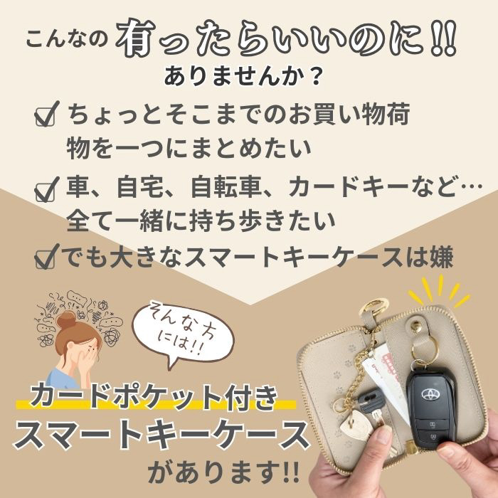 車屋が収納力にこだわったスマートキーケースです。大きなスマートキーもスリムに収納!6cm×11cmまでのスマートキーが収納可能!