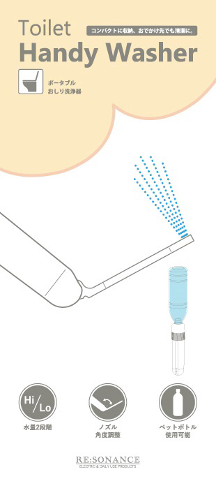 旅行やアウトドアなど小型なのでカバンにもすっきり収まるから、温水洗浄便座がなくても、安心してトイレが使えます。