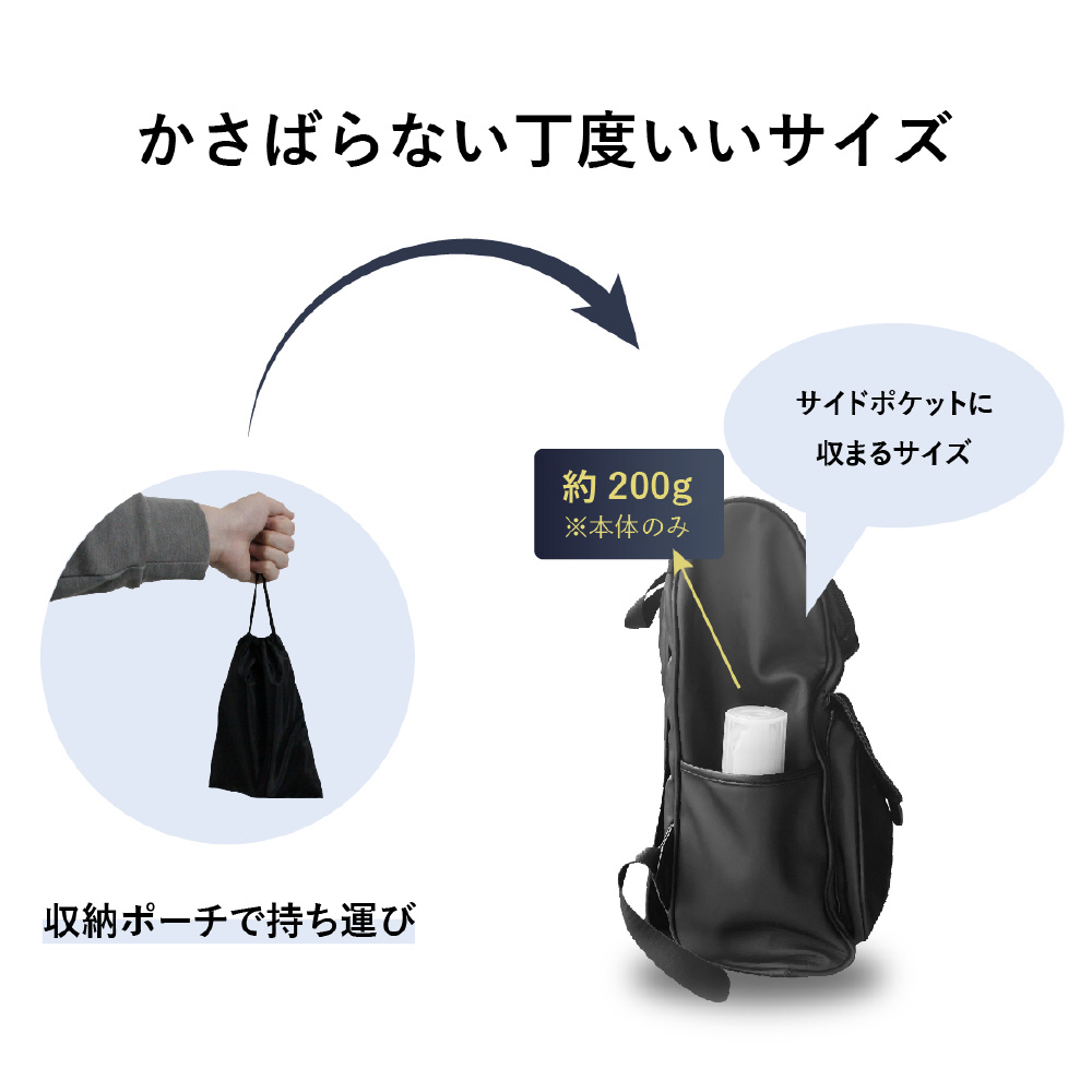 約200g(※本体のみ)でかさばらないちょうどよいサイズ。