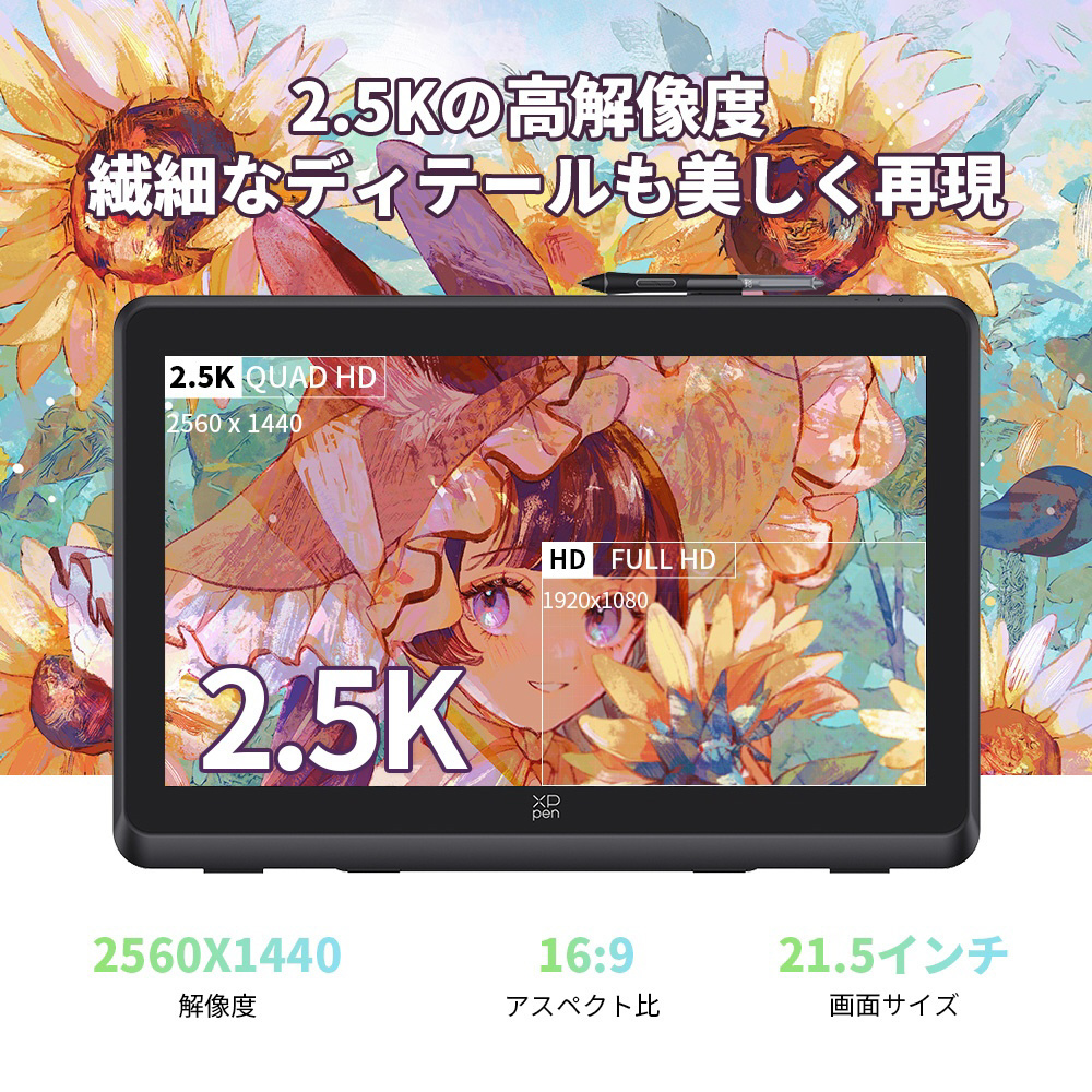 21.5型WQHDディスプレイを搭載し、筆圧感知16384レベルに対応した液晶タブレット