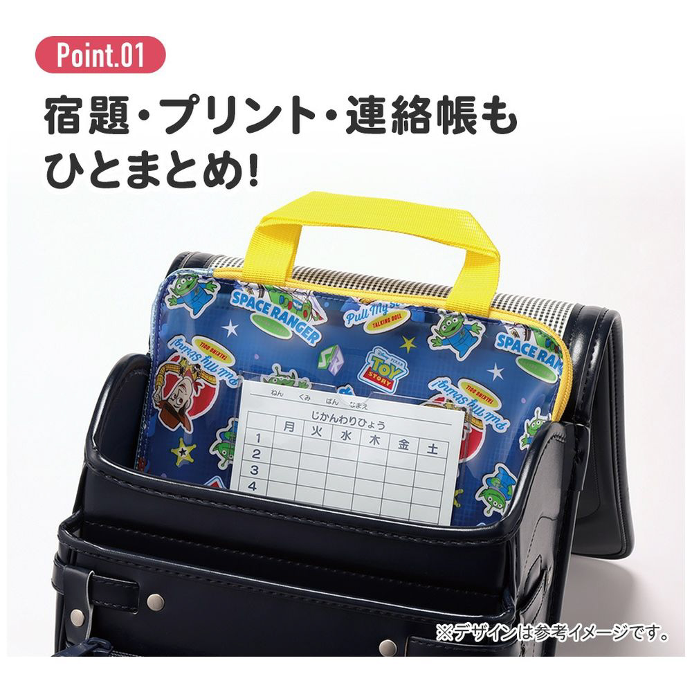 宿題・プリント・連絡帳もひとまとめ。大きく開いて出し入れしやすい。