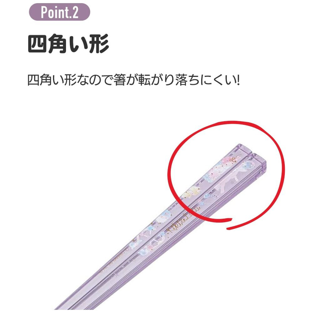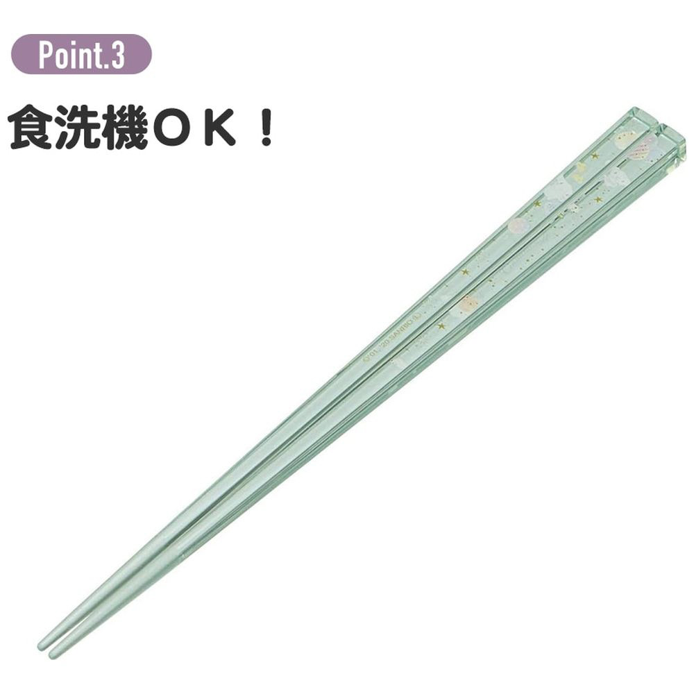 アクリル製クリアなお箸。箸先には食べ物が掴みやすい、すべり止め加工がされています。四角い形なので箸が転がり落ちにくい。食洗機OK。※電子レンジ・オーブンで使用しないでください。
