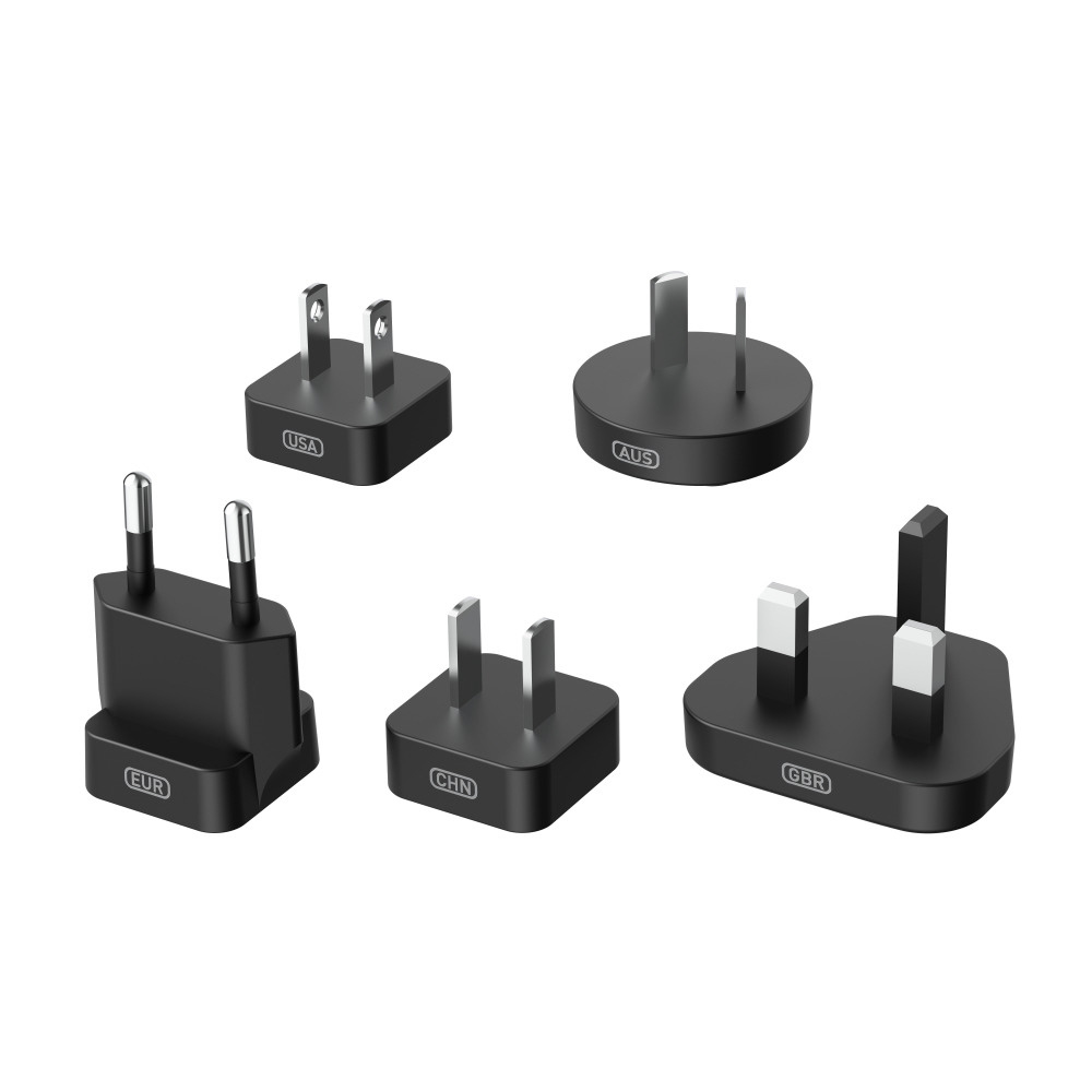 海外旅行でフレキシブルに使用することができる電源プラグ5セット。