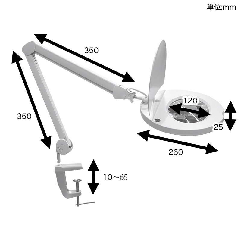 45個LEDライト付きルーペ。無段階調整可能でクランプ式
