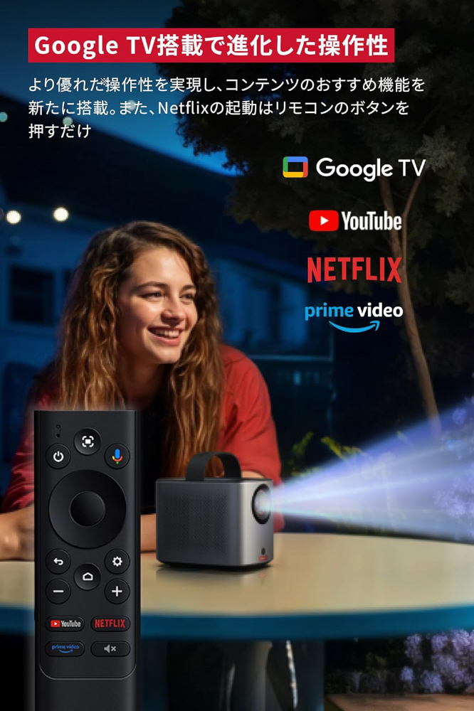 より優れた操作性を実現し、コンテンツのおすすめ機能を新たに搭載。Google TV 搭載プロジェクター