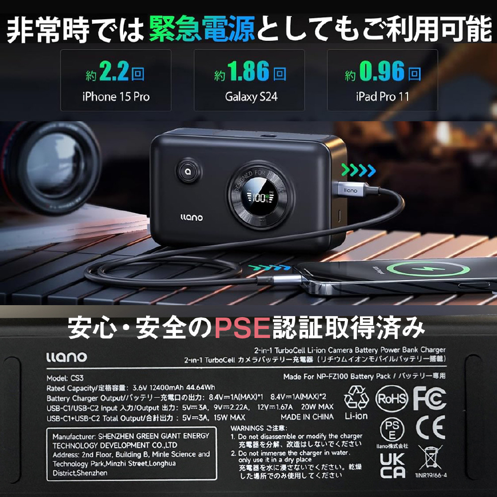 CS3 2in1 カメラバッテリー充電器 NP-FZ100用
