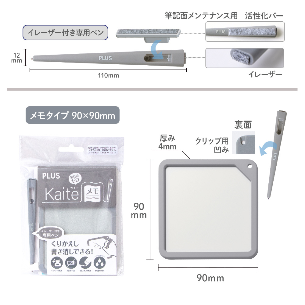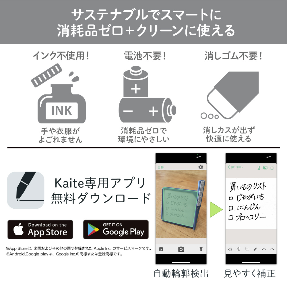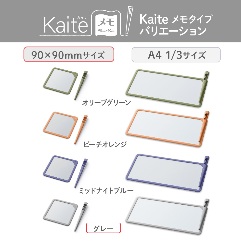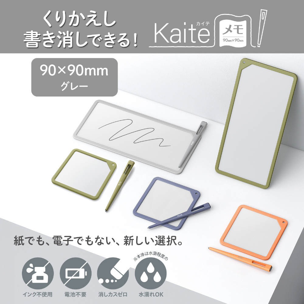 紙でも、電子でもない、新しい選択。必要なのはKaiteだけ。何度もくり返し、紙のようにスラスラ書き消しできるメモ、Kaite(カイテ)。