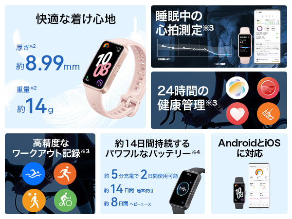HUAWEI Band 10は長時間の使用を想定し、通気性とフィット感を考慮して設計されています。