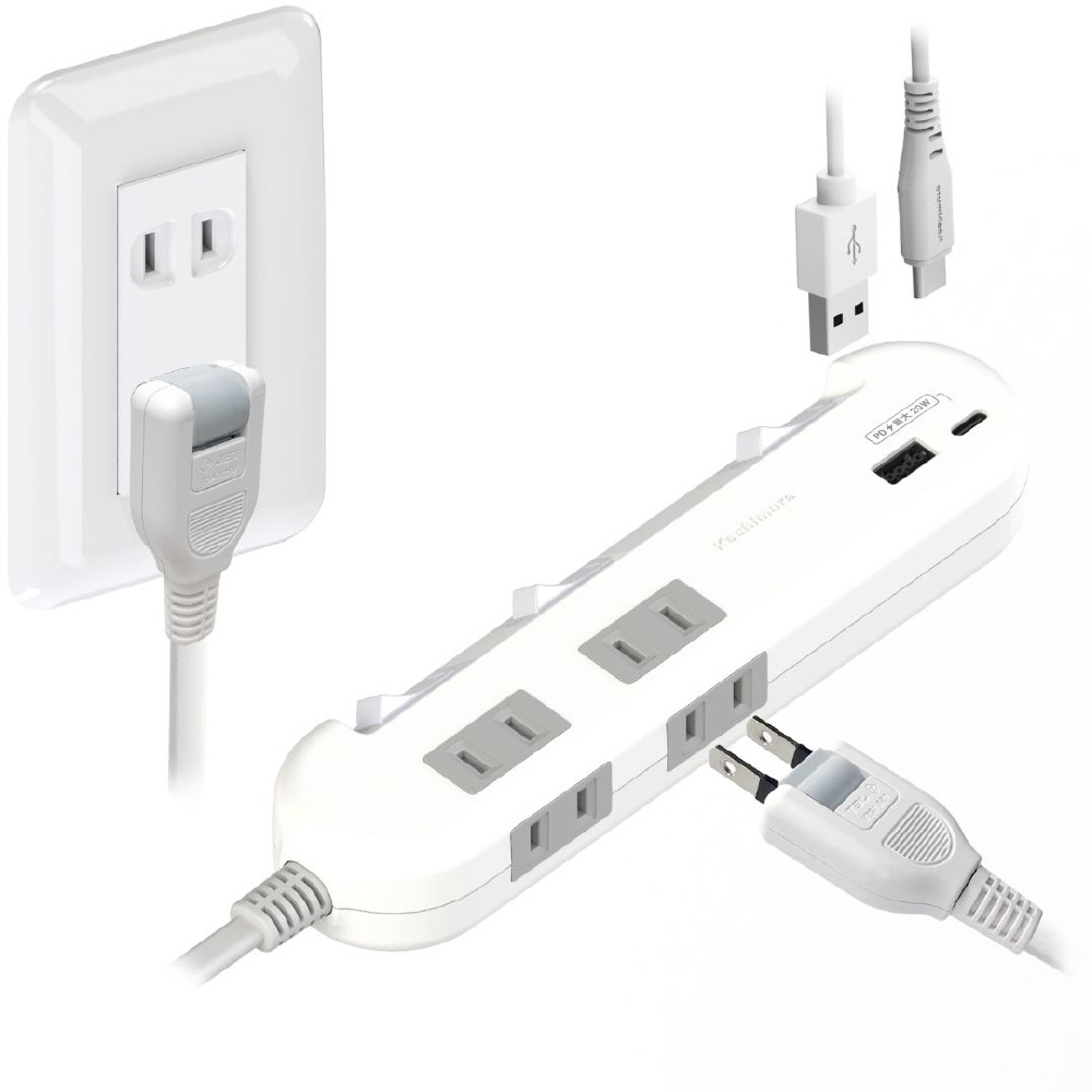 コンパクト設計のスイッチ付き4口ACタップ PD充電対応。