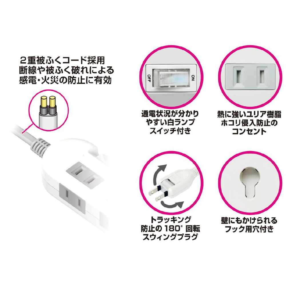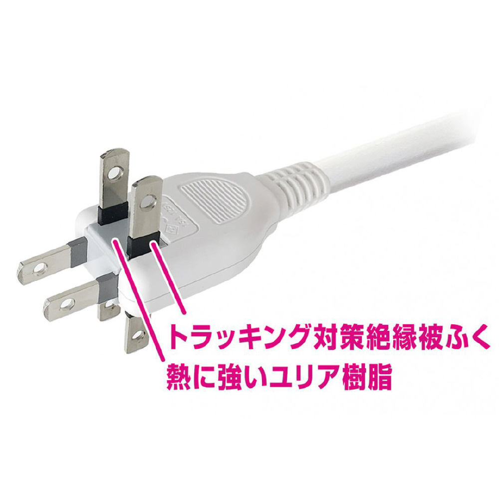 狭い場所でも差し込みやすいスウィングプラグ採用。プラグ部にはPBT樹脂トラッキング防止絶縁カバーを採用。