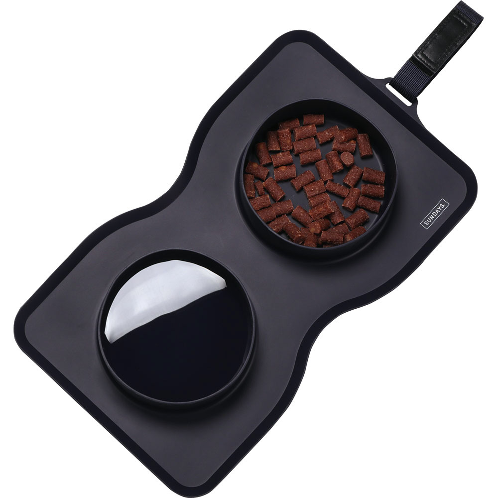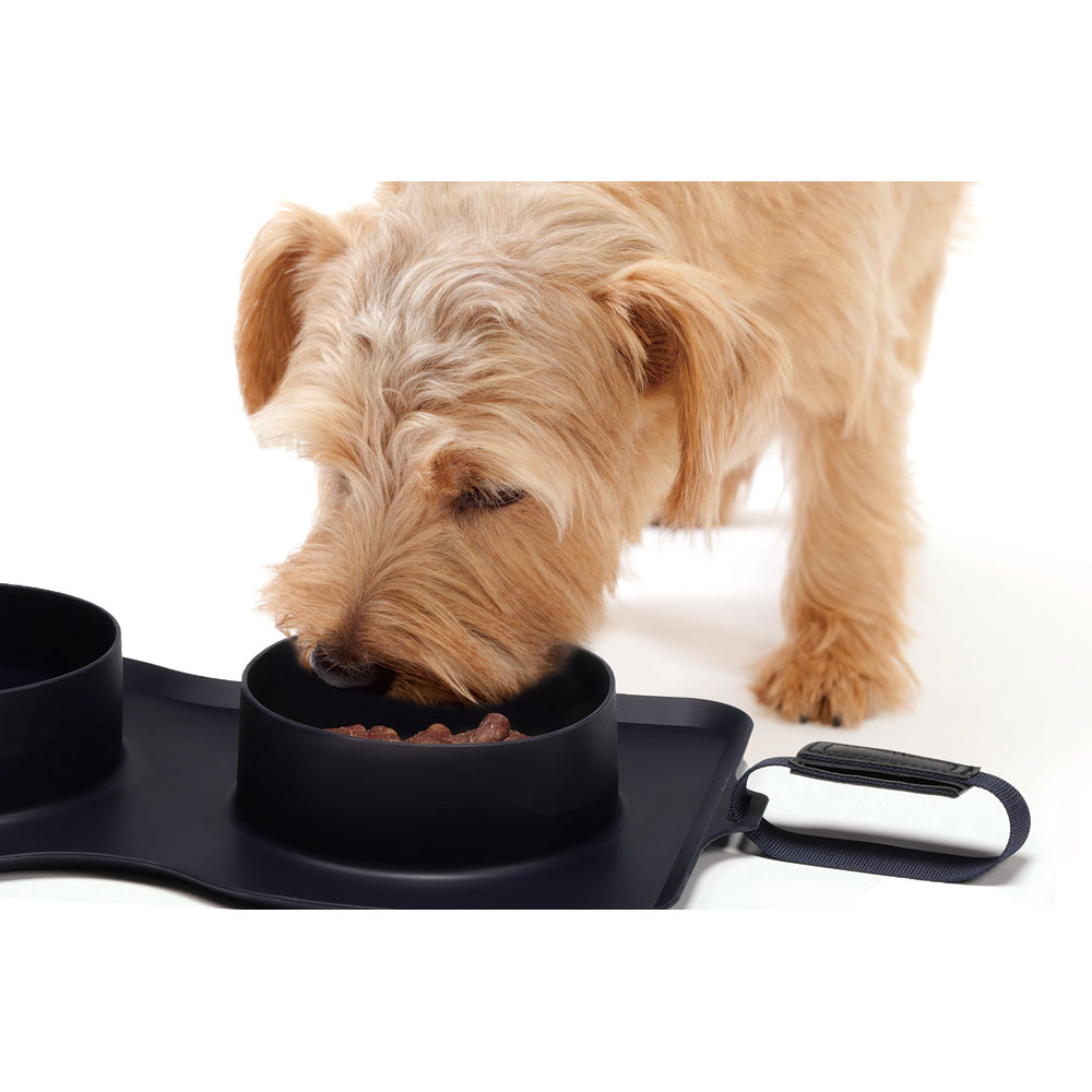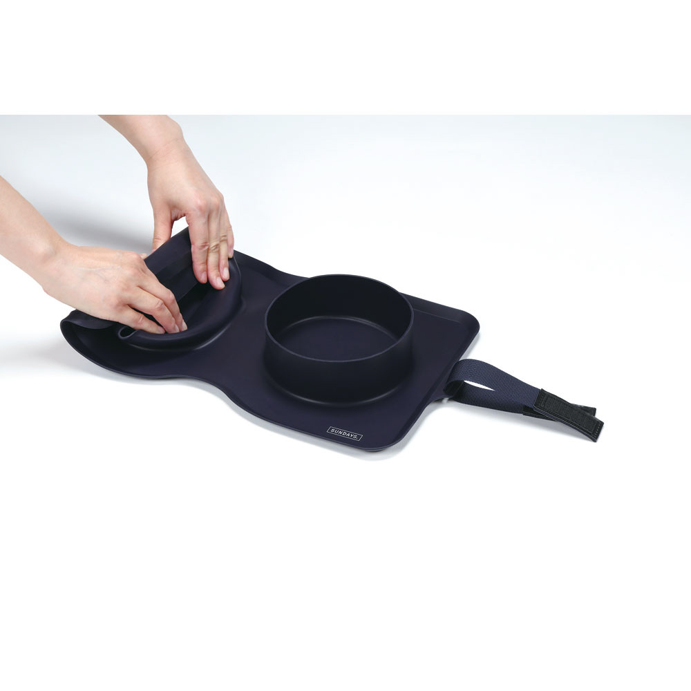 丸めて携帯できる、フード・水入れ一体型フードマット!
