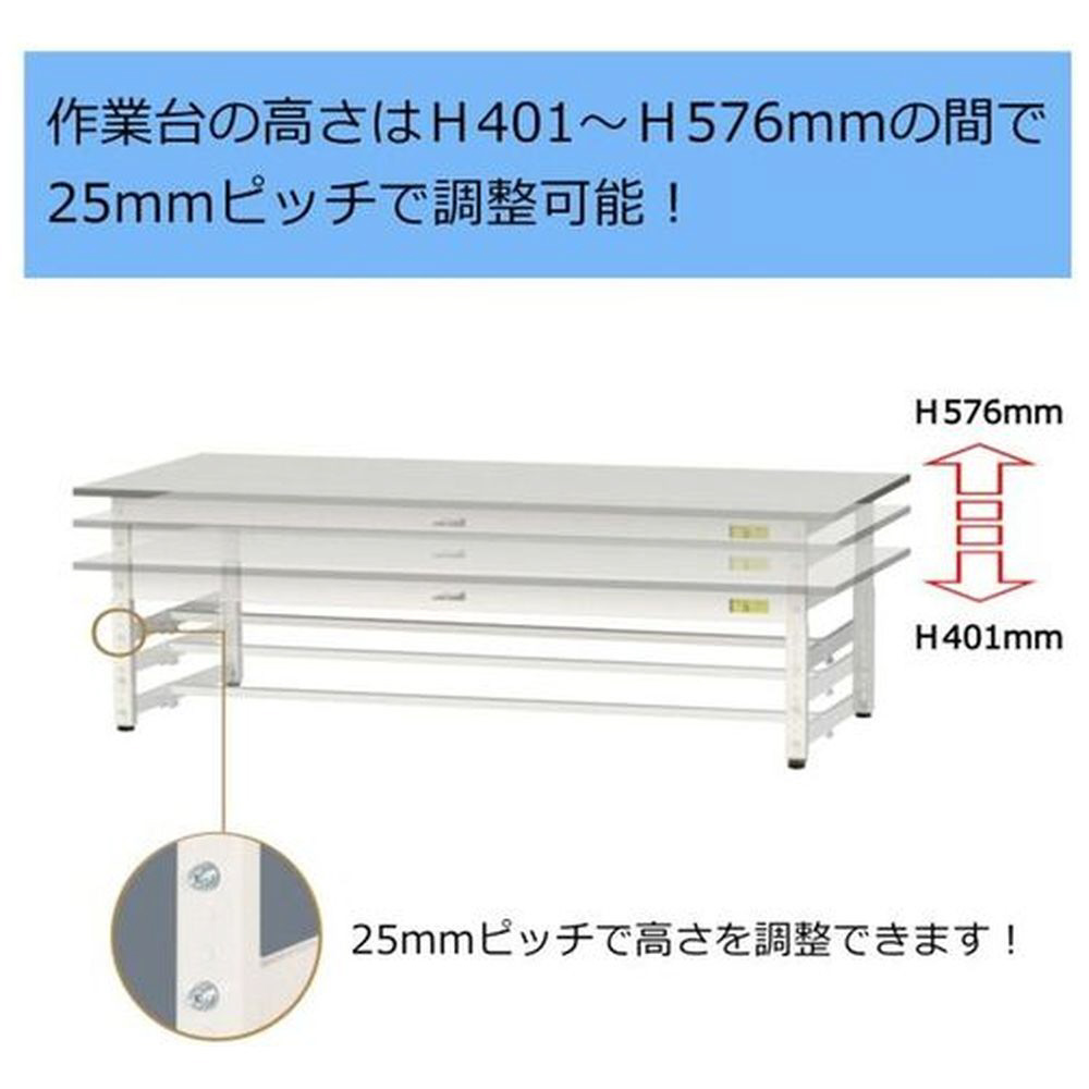 ワークテーブル150シリーズ 高さ調整タイプ低床用 RoHS2指令対応塩ビシート天板 W1800×D750×H401〜H576mm