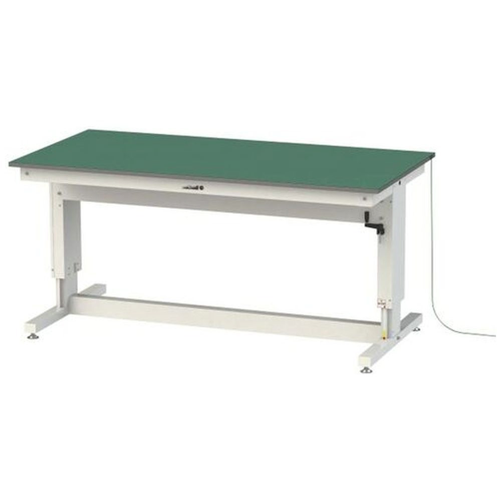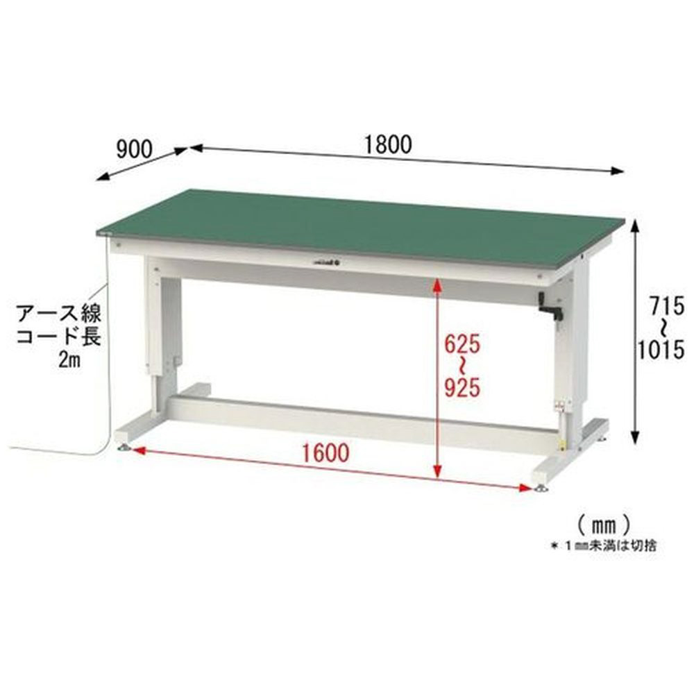 ワークテーブル昇降タイプ 導電性ゴムマット貼りタイプ W1800×D900×H715〜H1015mm 緑マット/シルキーホワイト