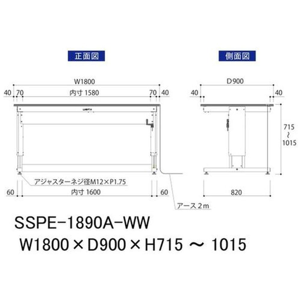 | 商品名 | ワークテーブル昇降タイプ 導電性ゴムマット貼りタイプ W1800×D900×H715〜H1015mm 緑マット/シルキーホワイト |
