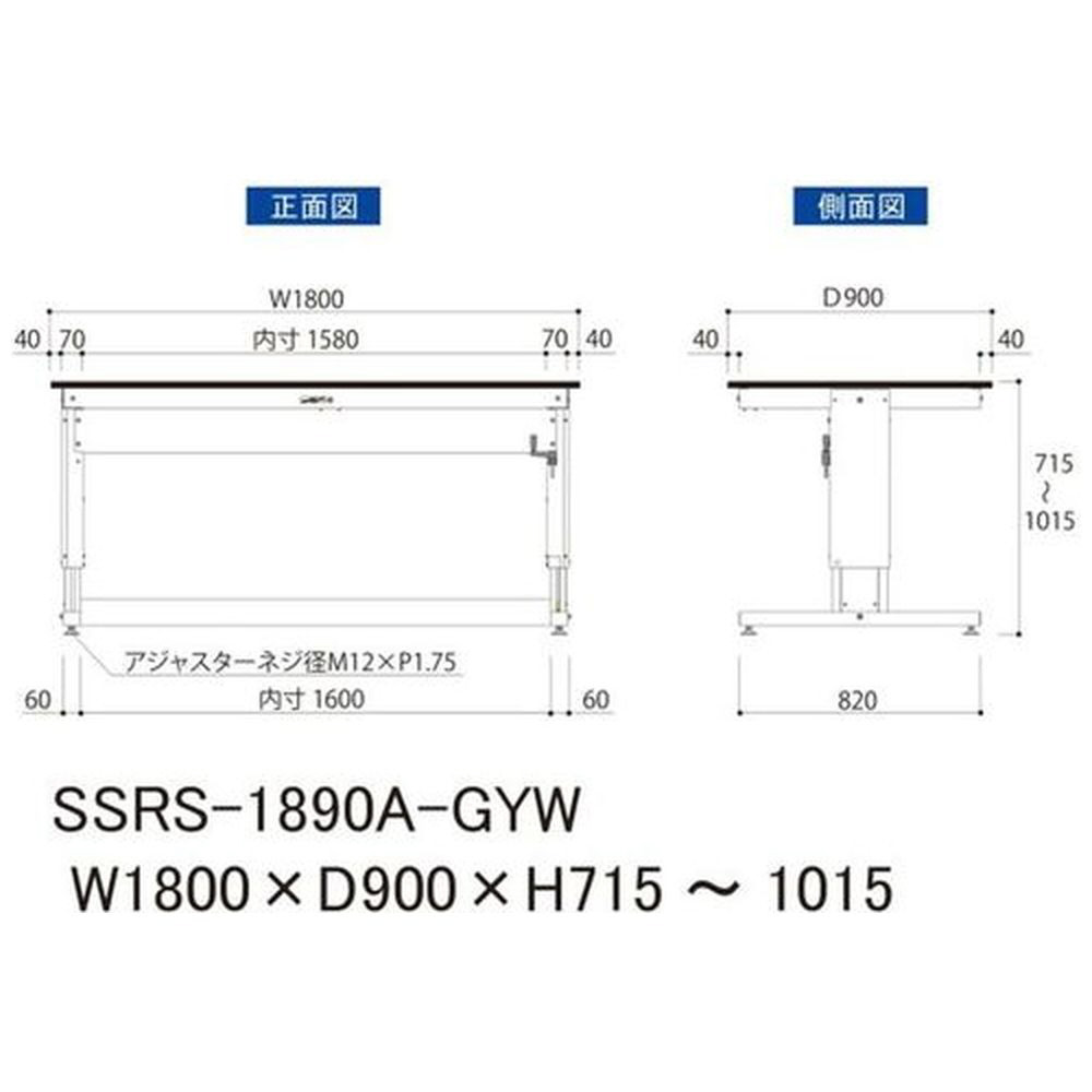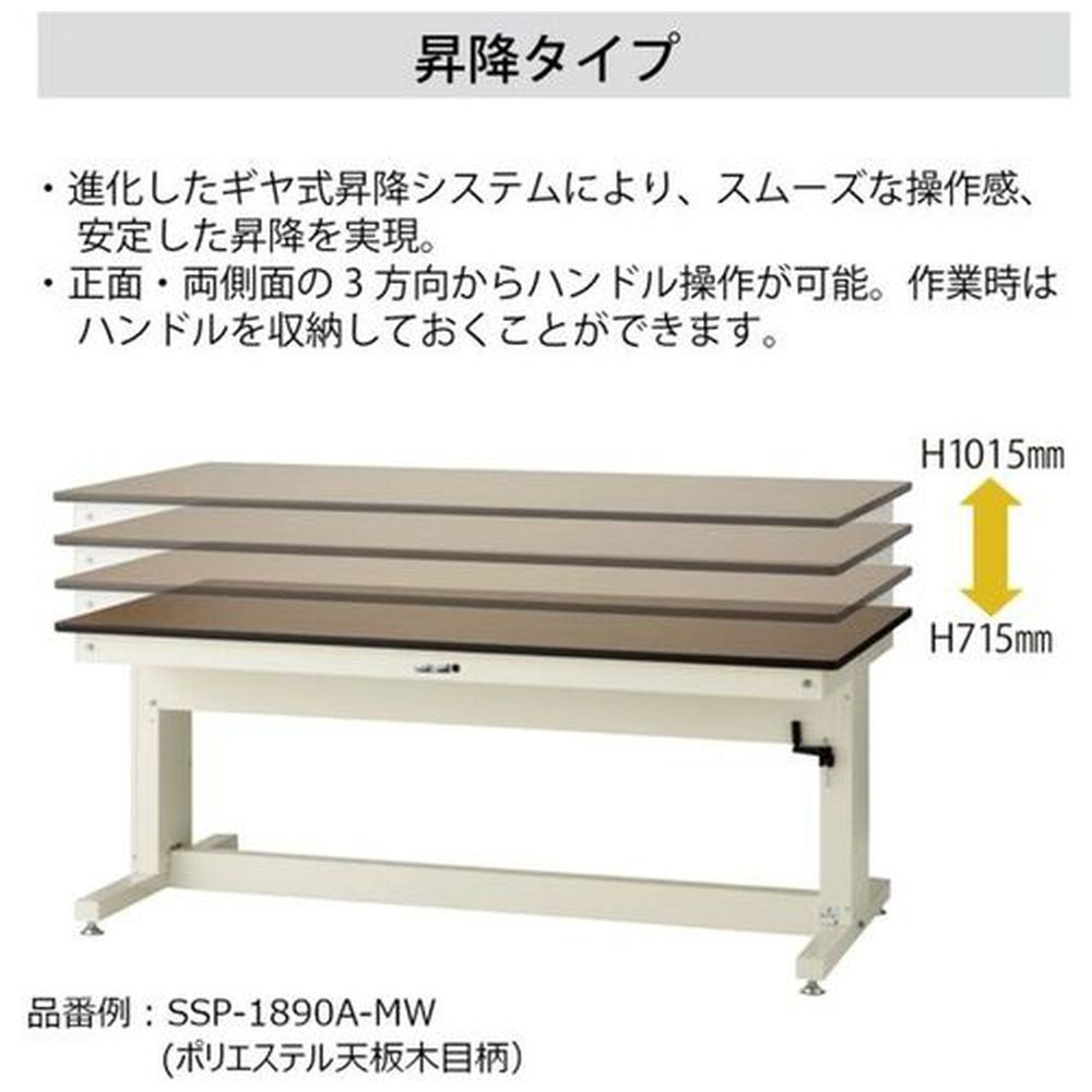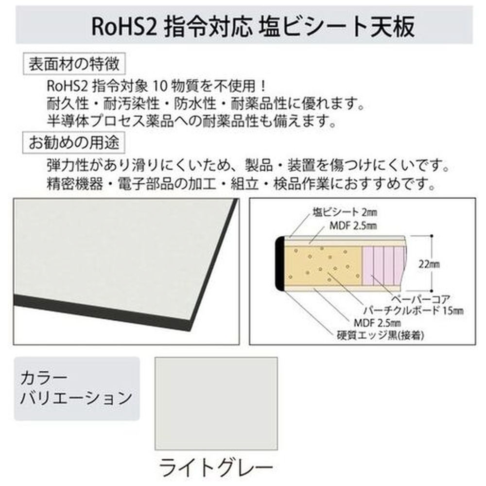 ワークテーブル昇降タイプ RoHS2指令対応塩ビシート天板 W1800×D900×H715〜H1015mm ライトグレー/シルキーホワイト
