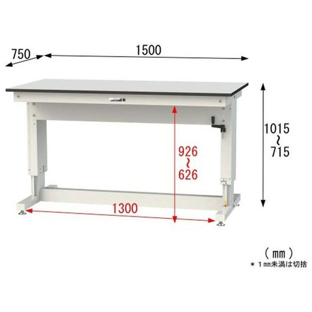 ワークテーブル昇降タイプ RoHS2指令対応塩ビシート天板 W1500×D750×H715〜H1015mm ライトグレー/シルキーホワイト