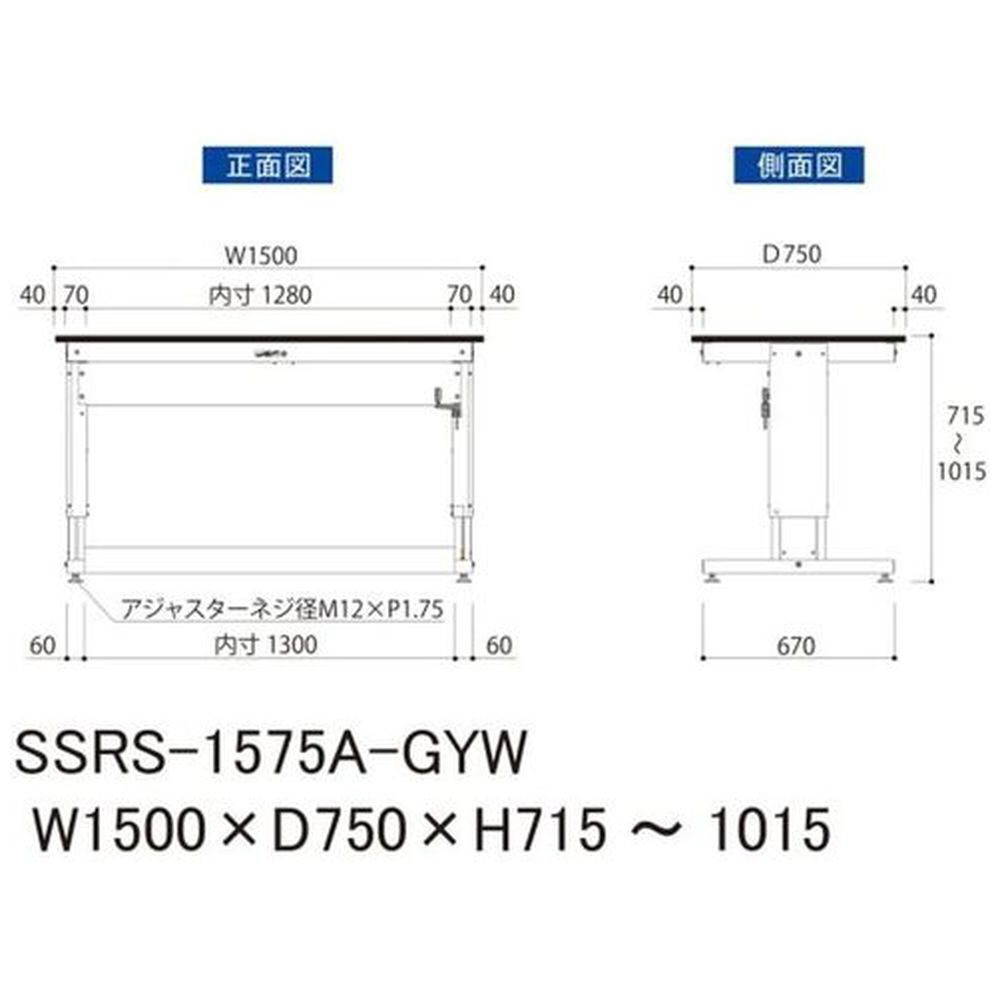 | 商品名 | ワークテーブル昇降タイプ RoHS2指令対応塩ビシート天板 W1500×D750×H715〜H1015mm ライトグレー/シルキーホワイト |
