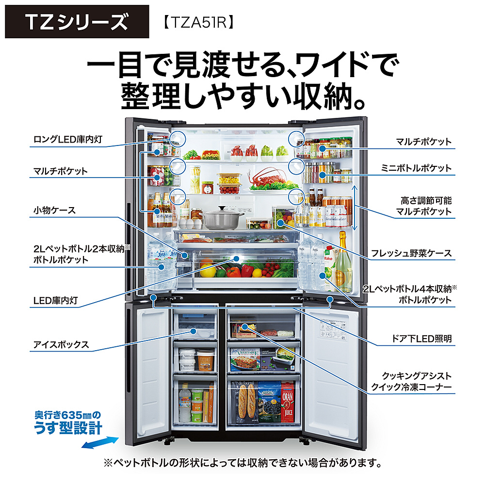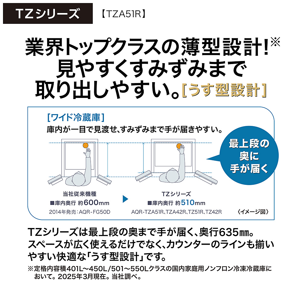 | 商品名 | 冷蔵庫 AQUA ダークシルバー AQR-TZA51R(DS) [幅83cm /512L /4ドア /観音開きタイプ /2025年]【基本設置料金セット】 【買い替え5000pt】 |